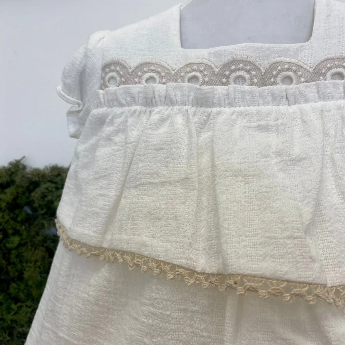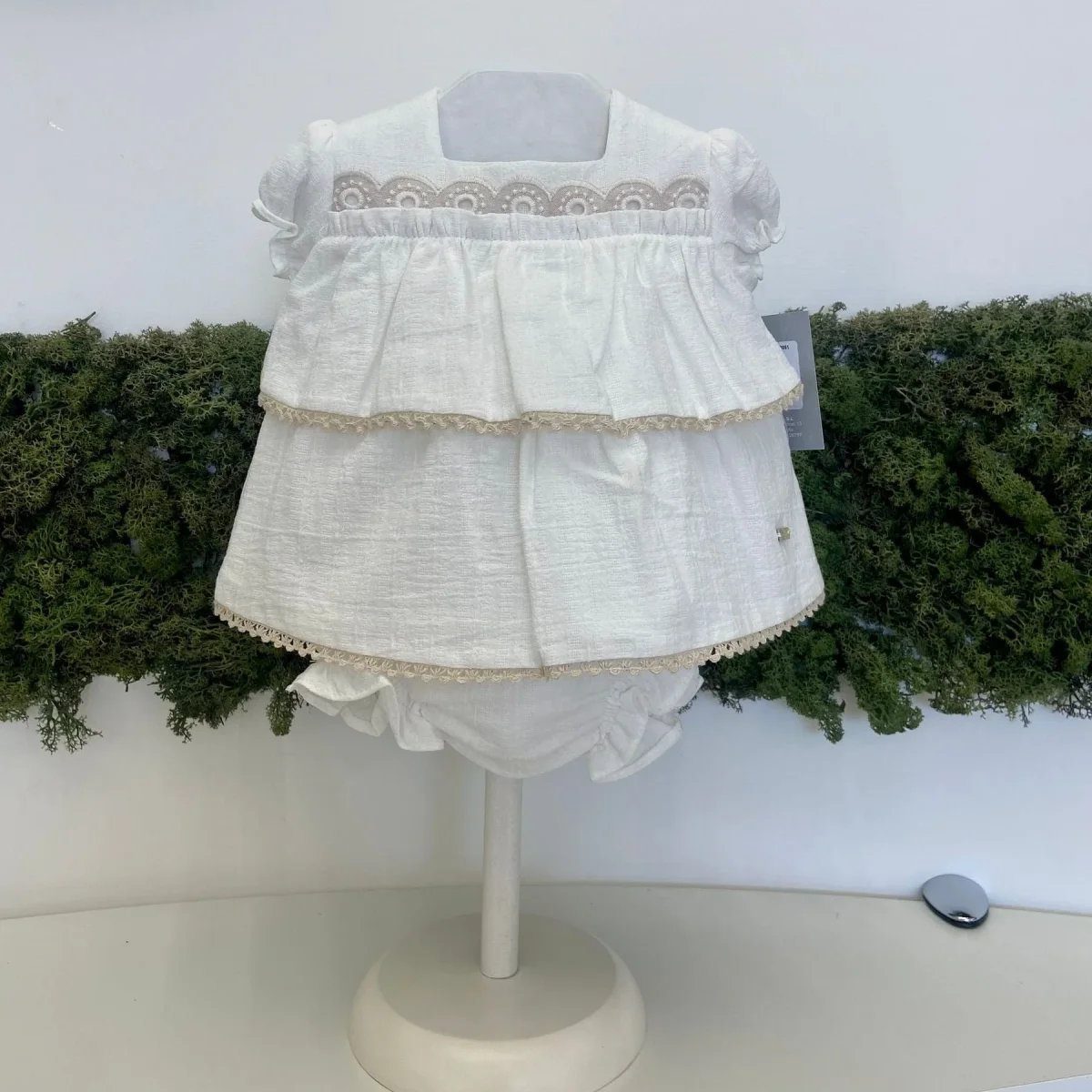 Abitino con culotte in lino e balze.