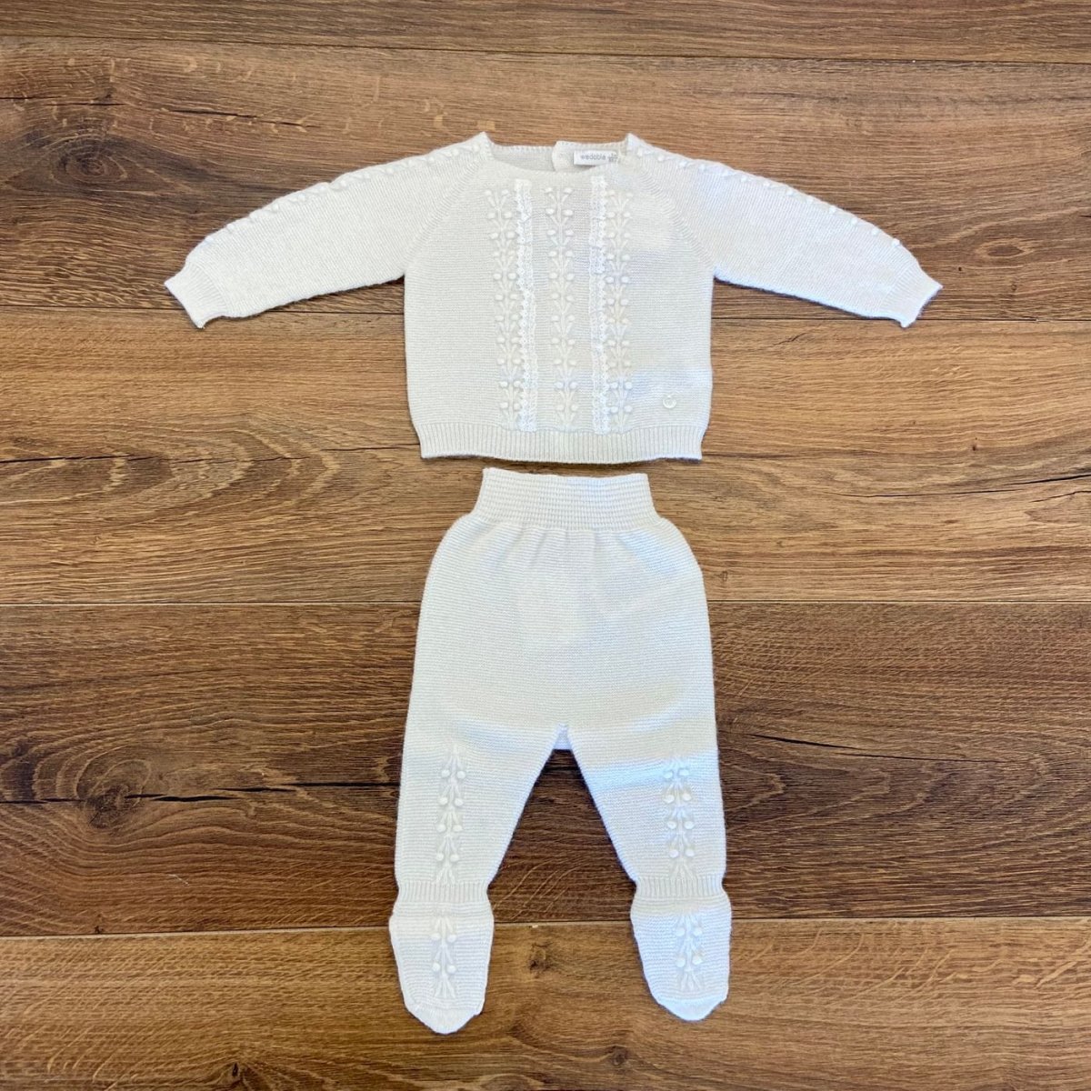 Completo due pezzi con lana cashemere e pizzo valenciennes.