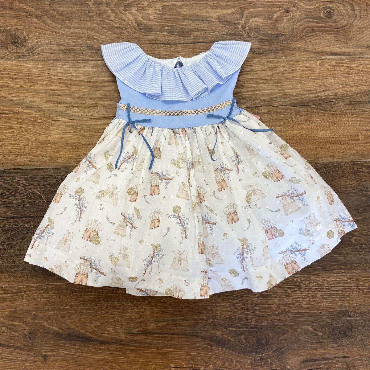 Abitino con collo con rouches e applicazione.