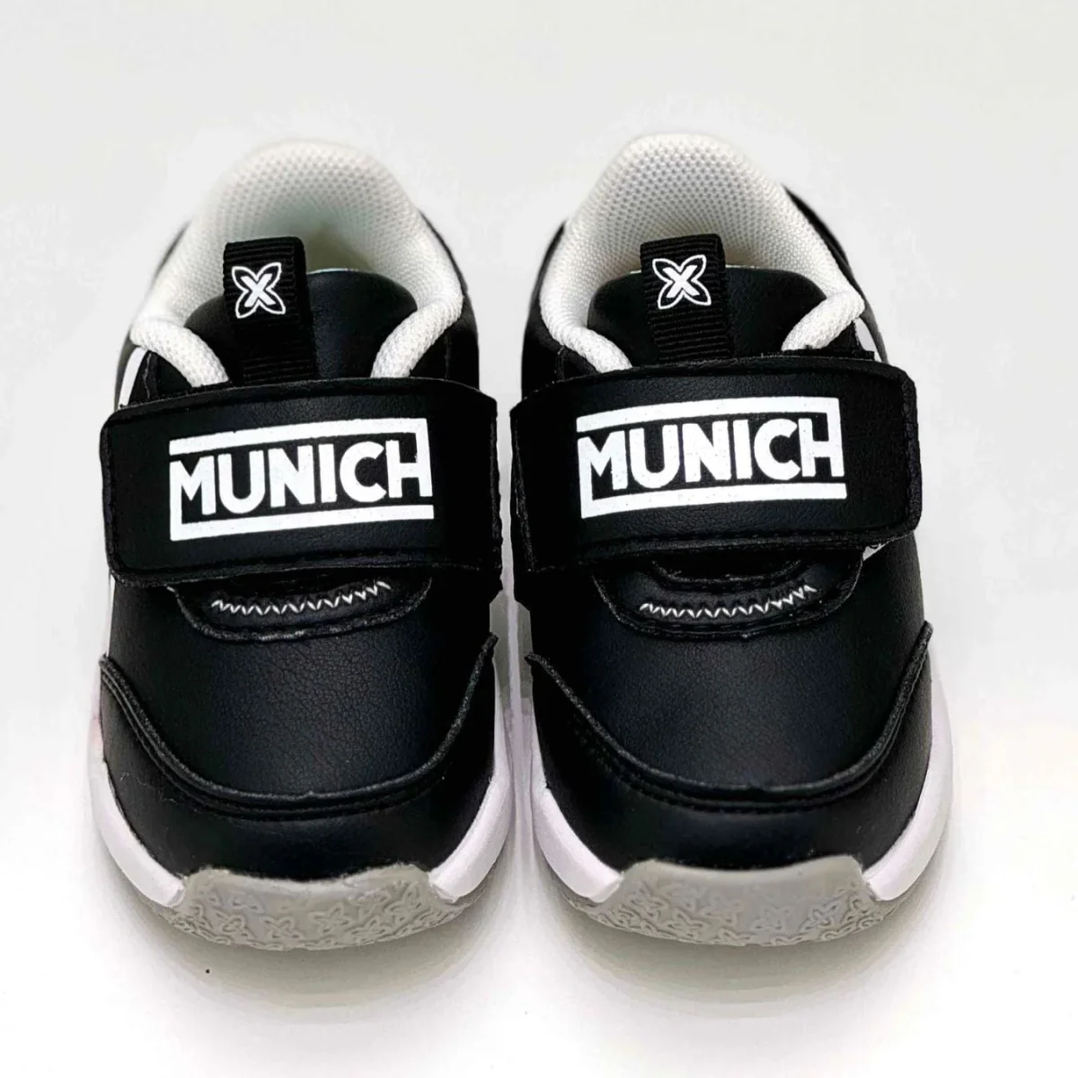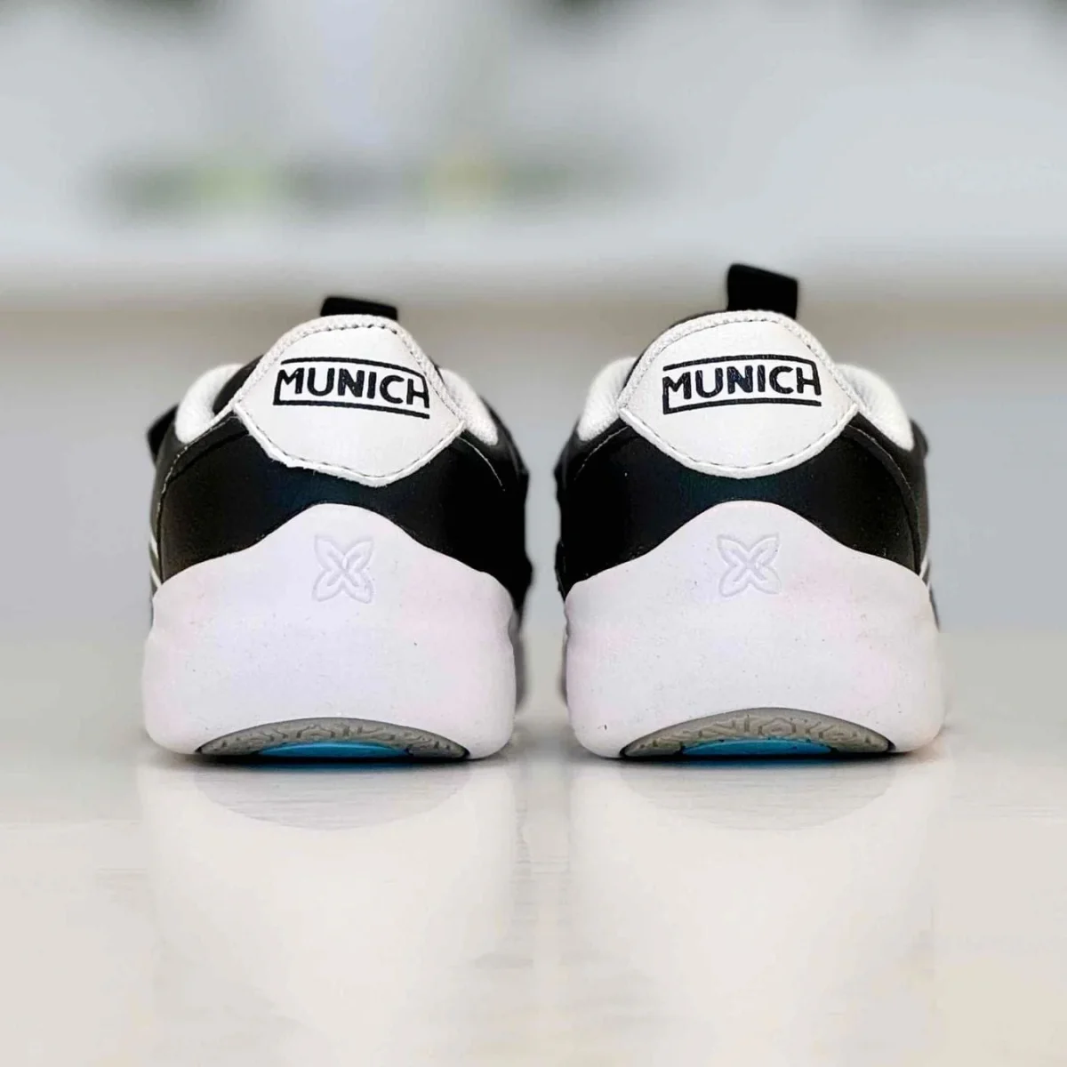 sneakers di pelle nera con alto bianco, con logo sullo strappo