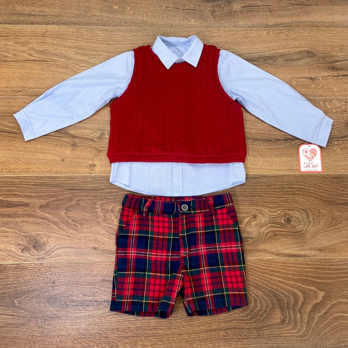 Completo tre pezzi con camicia,gilet e pantaloncino.
