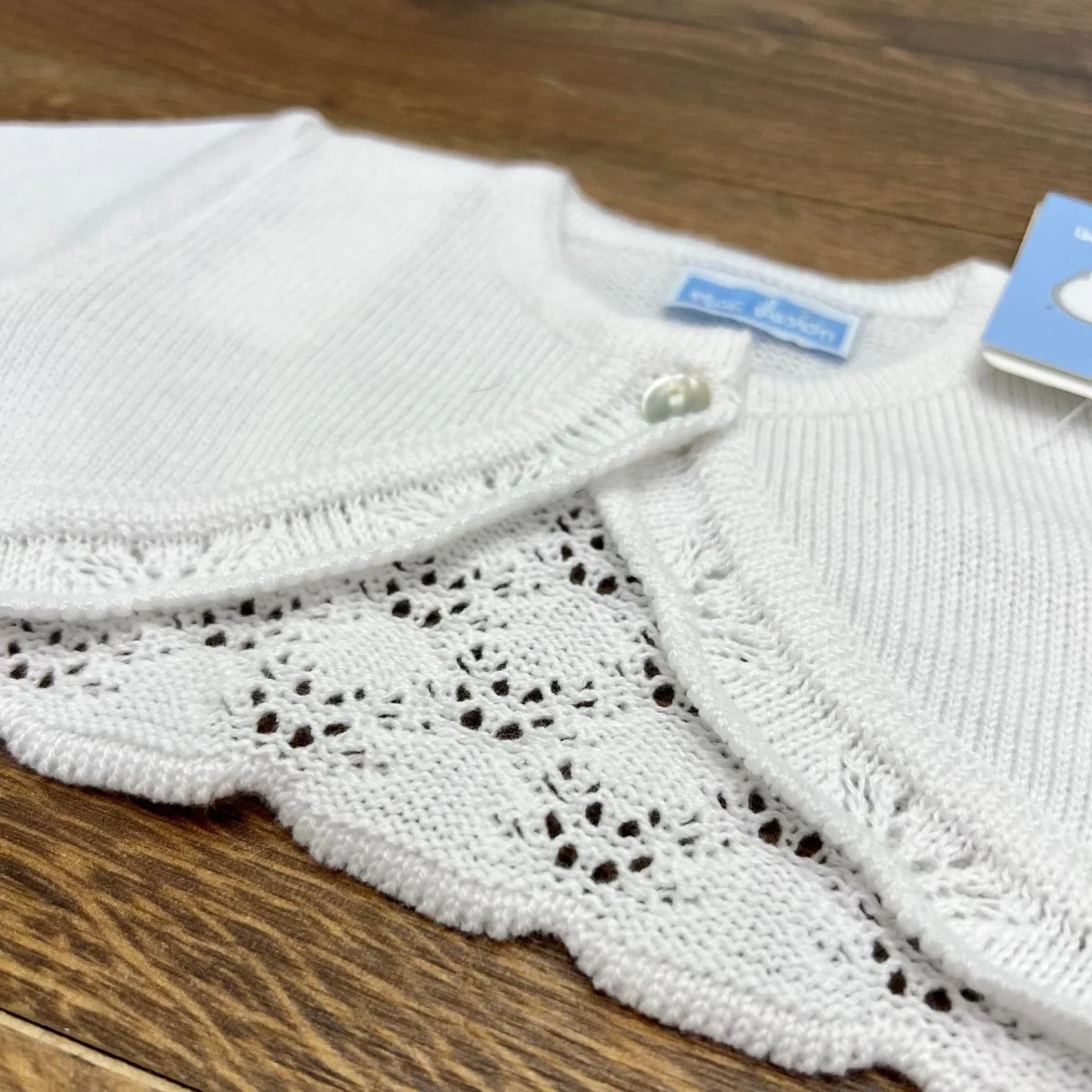 Cardigan traforato con bottoncino.