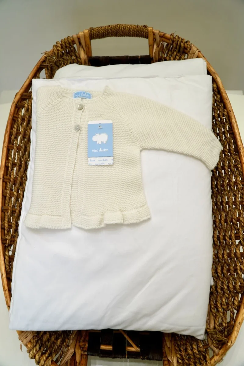 Cardigan neonata aperto con due bottoncini