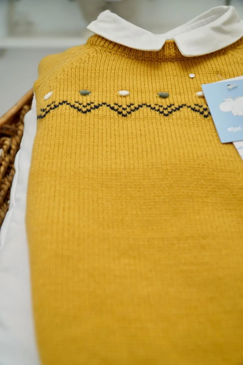 Completo bimbo con maglioncino col.mostaza e pantalone a quadri