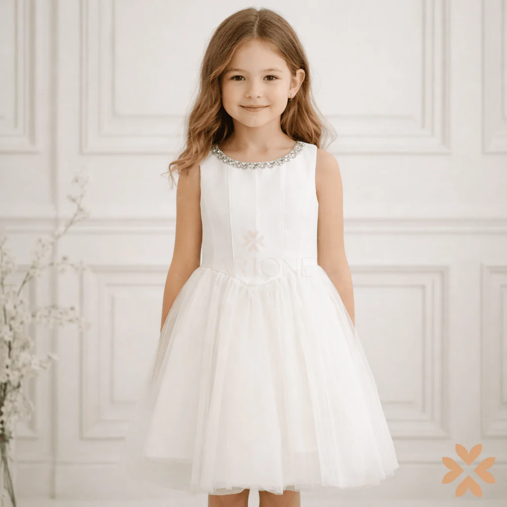 Un modello ideale per comunioni e occasioni speciali, realizzato con tessuti top quality e finiture curate in ogni dettaglio.