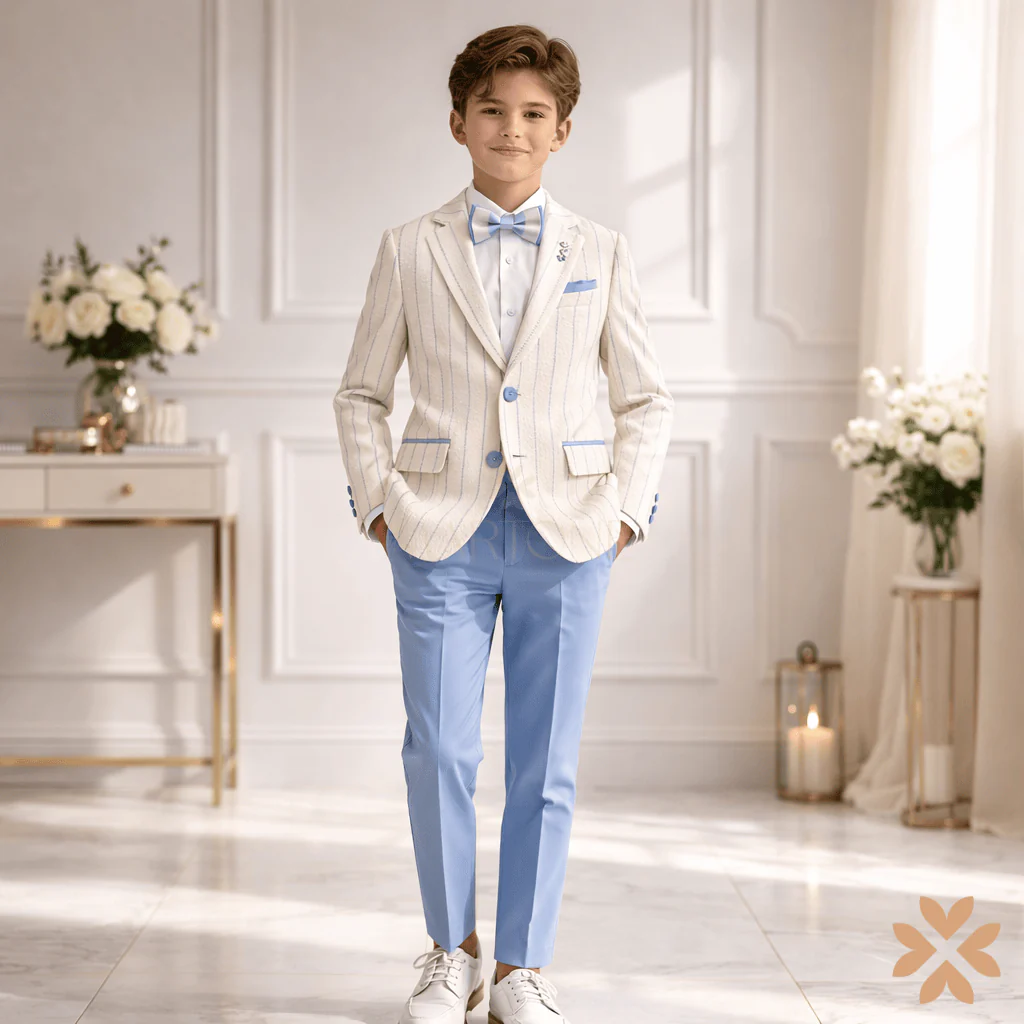 Un outfit ideale per comunioni ed eventi speciali, realizzato con tessuti top quality e finiture curate in ogni dettaglio.
