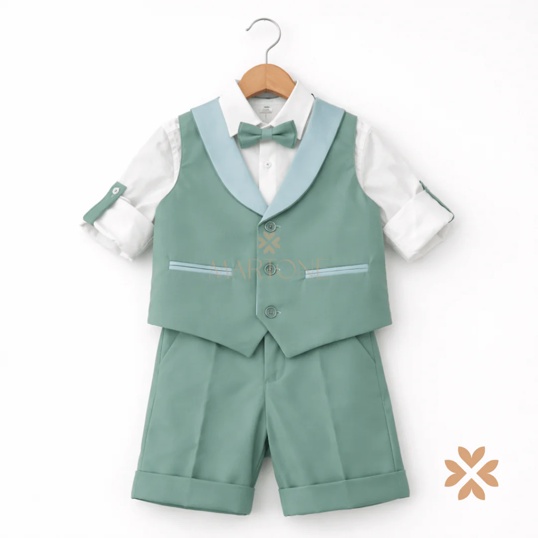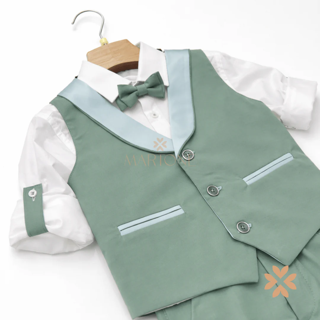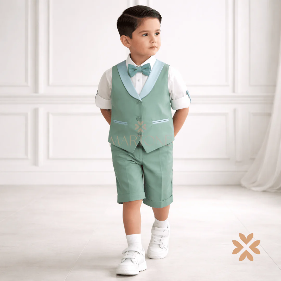 Completo bambino cerimonia verde con gilet satinato