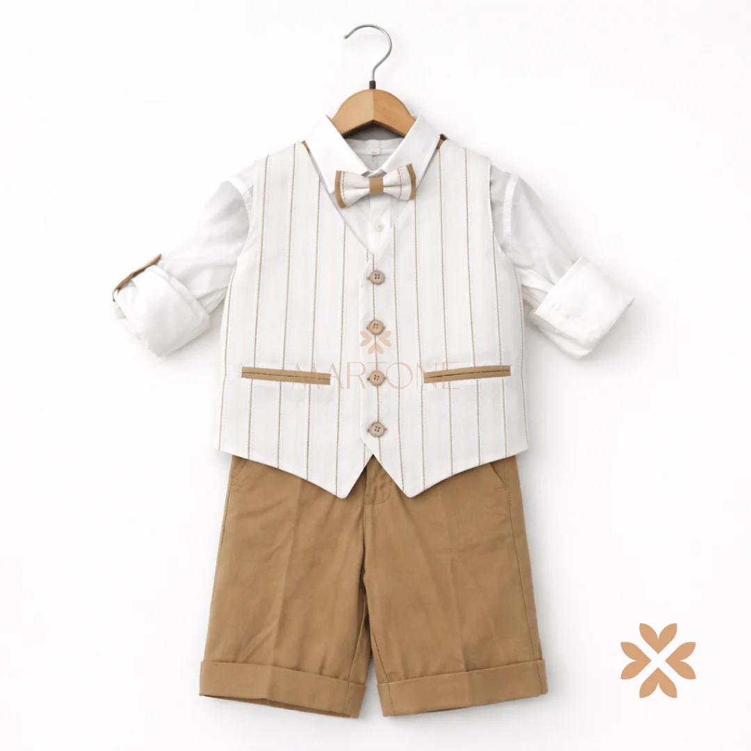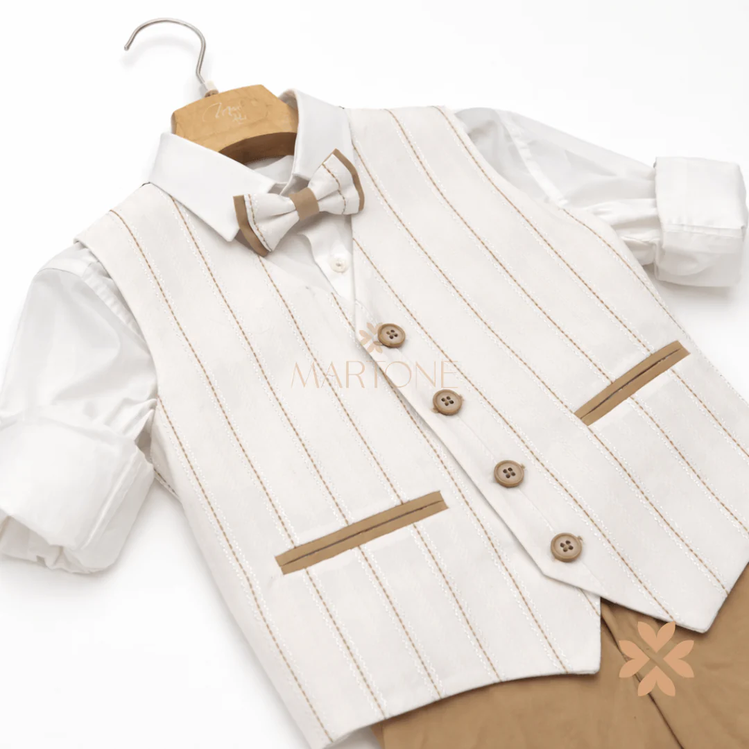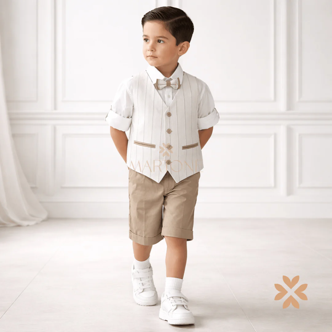 Completo bambino cerimonia beige con gilet lavorato