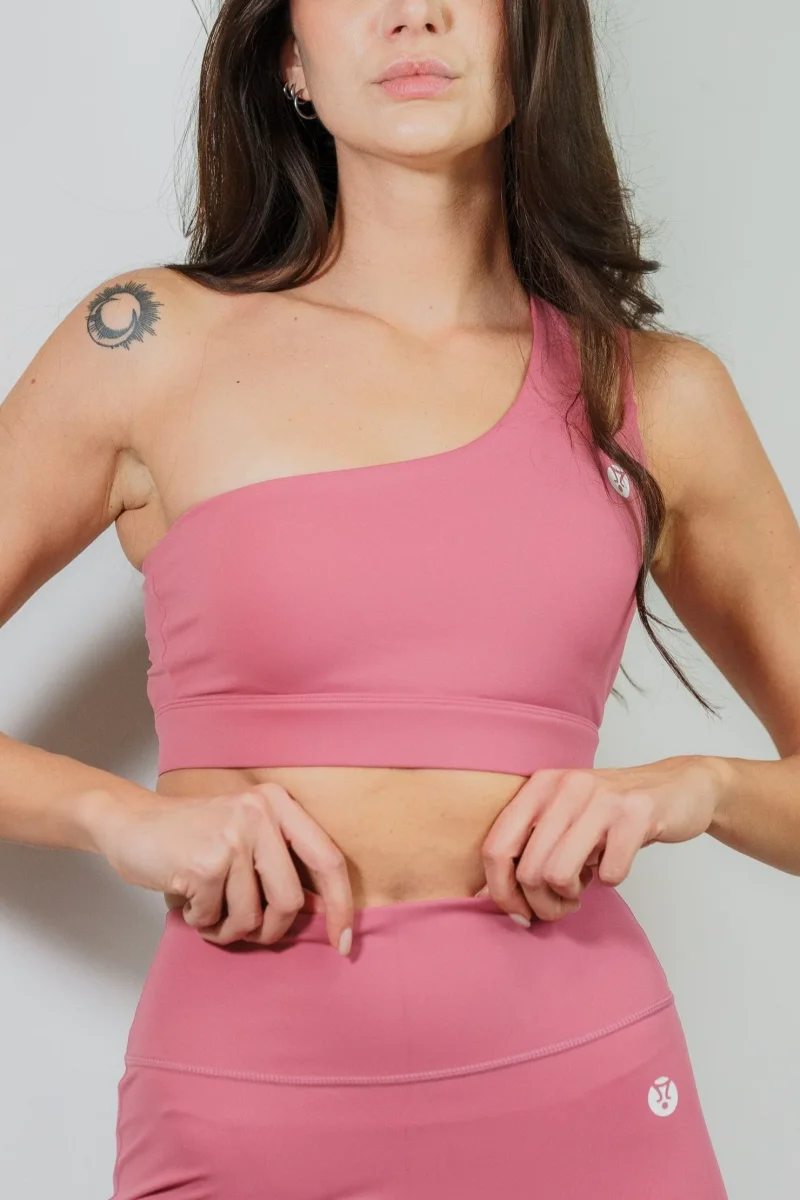 Top monospalla ad alto supporto con dettaglio sul retro.