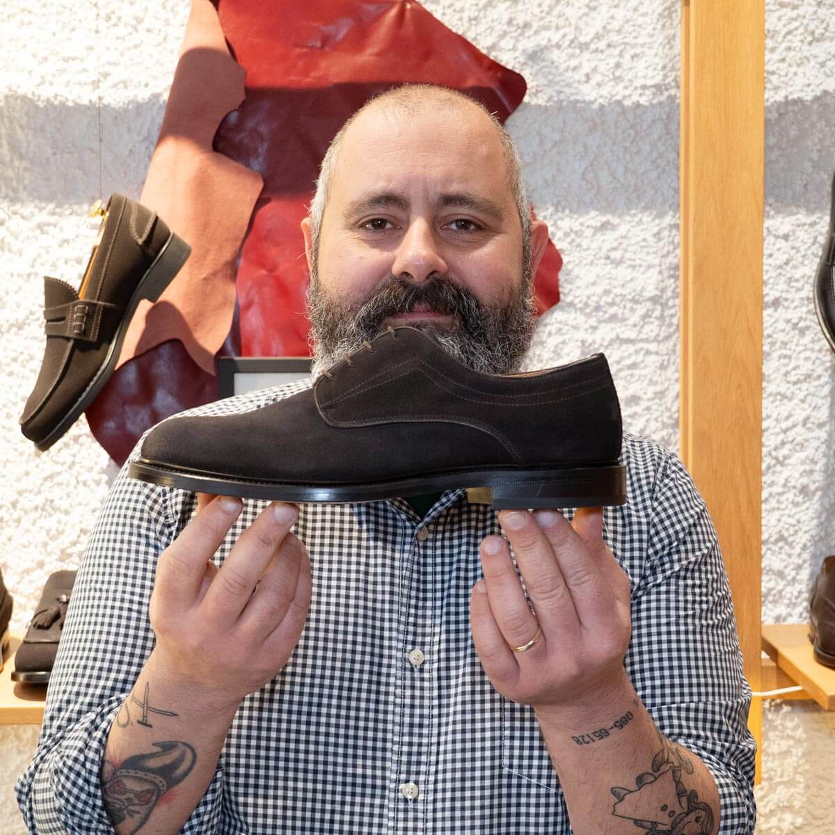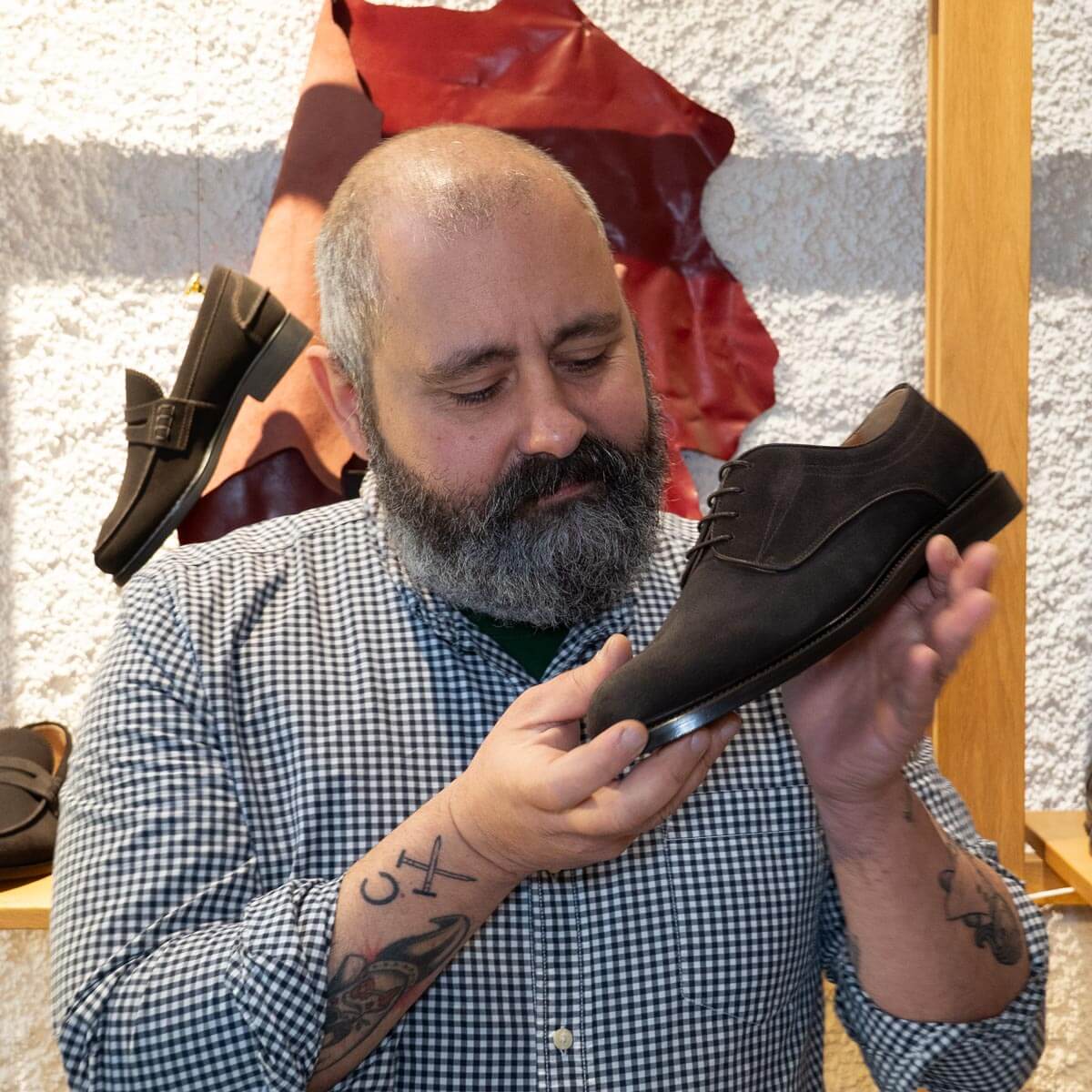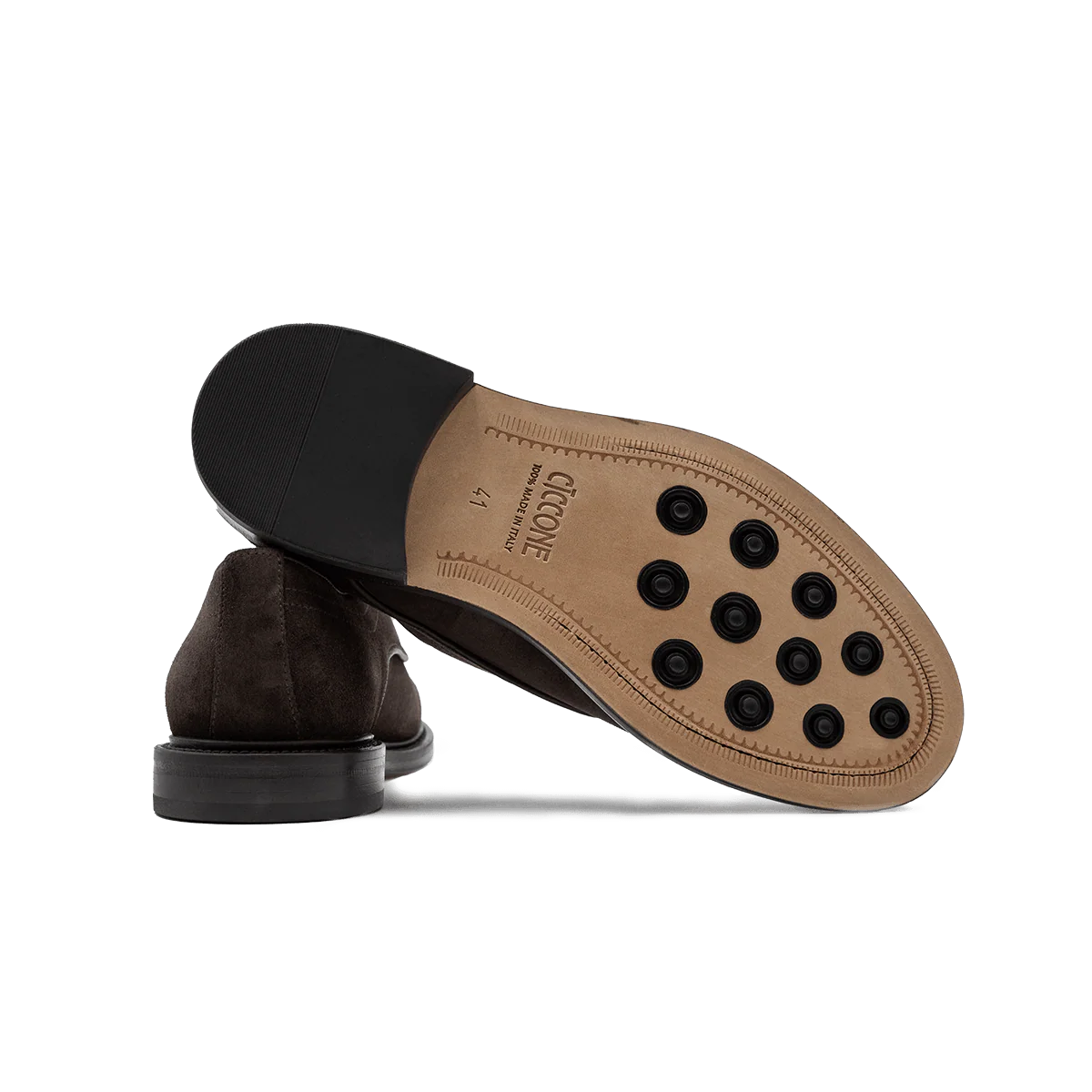 Il modello Asciano è una Derby in pelle scamosciata (crosta inglese a pelo corto) che non fa quelle brutte pieghe sulla tomaia. Grazie al fondo in cuoio rimane elegante, e i clip in gomma applicati nella suola permettono alla scarpa di essere anti scivolo e non rischiare di cadere su grate o superfici lisce.