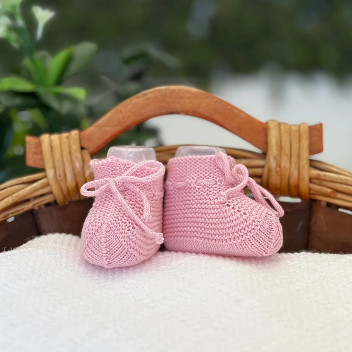 Scarpina neonato in filo di cotone con intrecci e cordoncino.