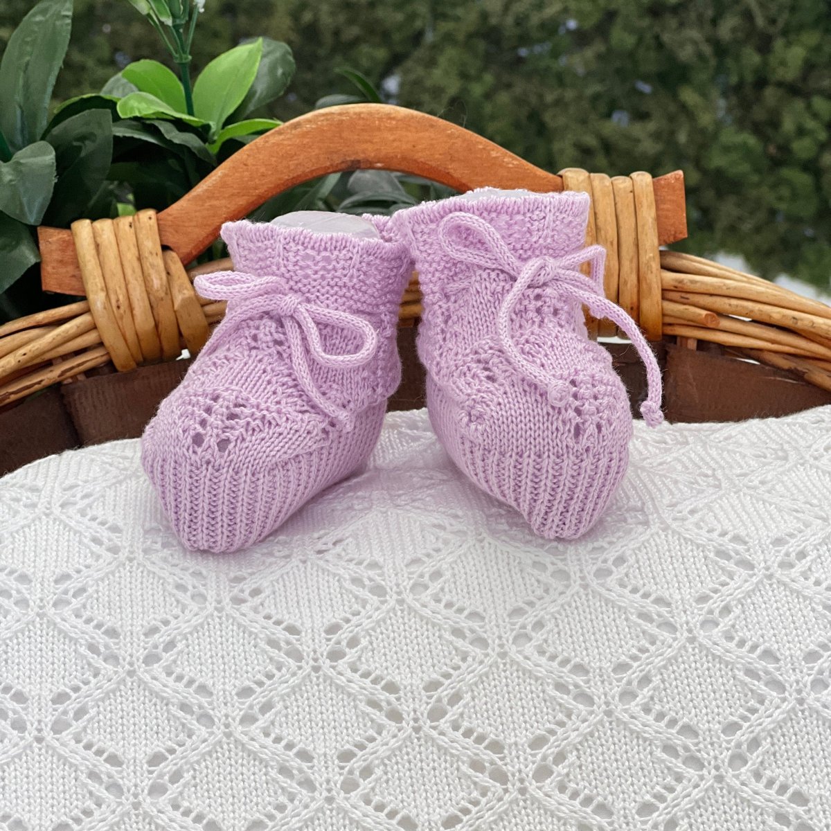 Scarpina neonato/a in filo di cotone con intrecci e cordoncino.