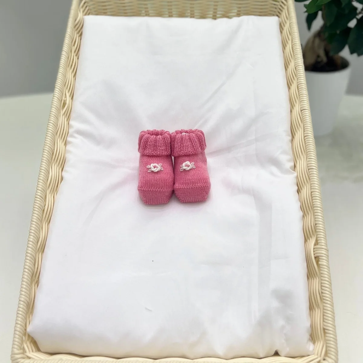 Babbuce rosa antico in pura lana con fiore ricamato.