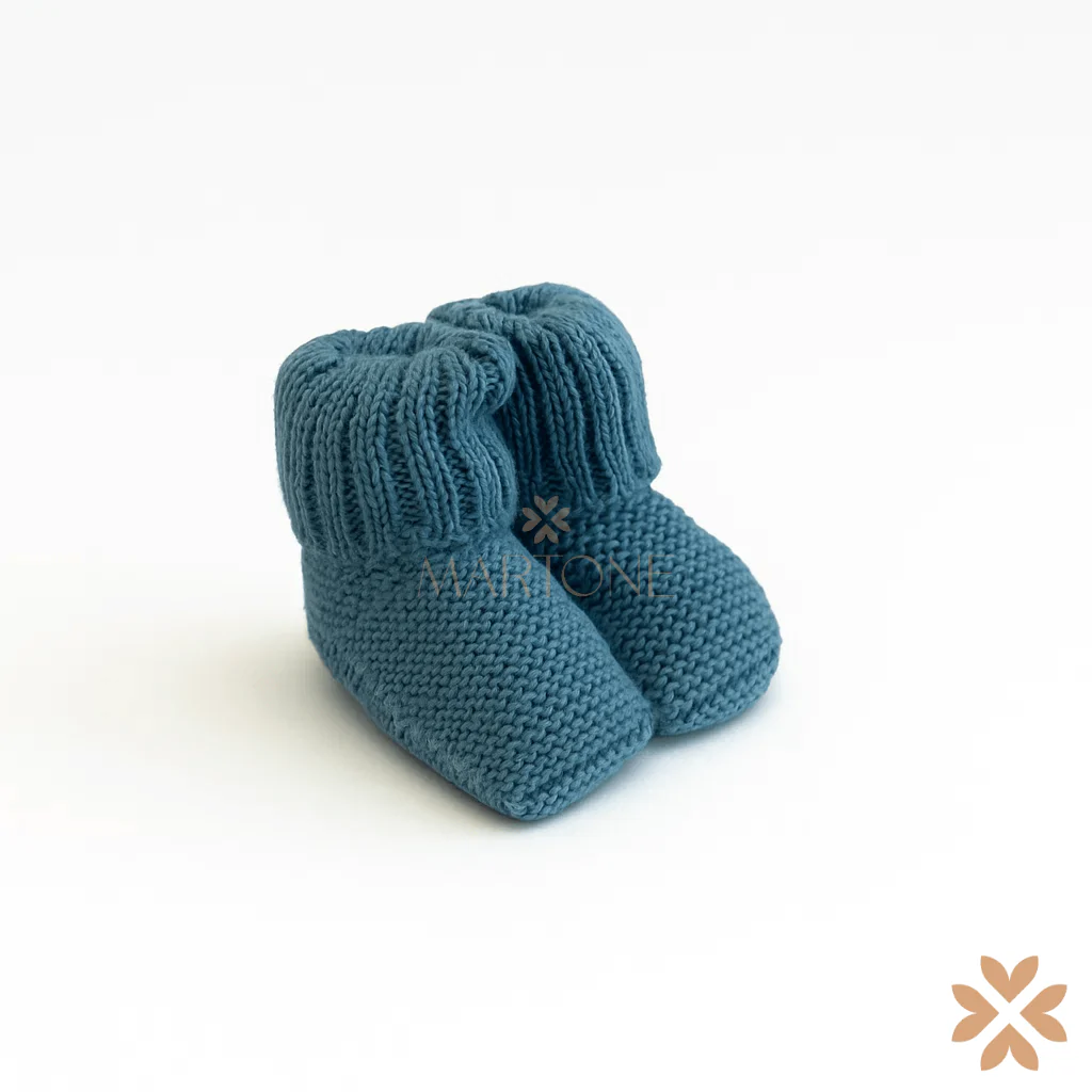 Babbucce neonato in misto lana, con risvolto alla caviglia per una migliore aderenza e comfort. Morbide e calde, ideali per la stagione invernale.