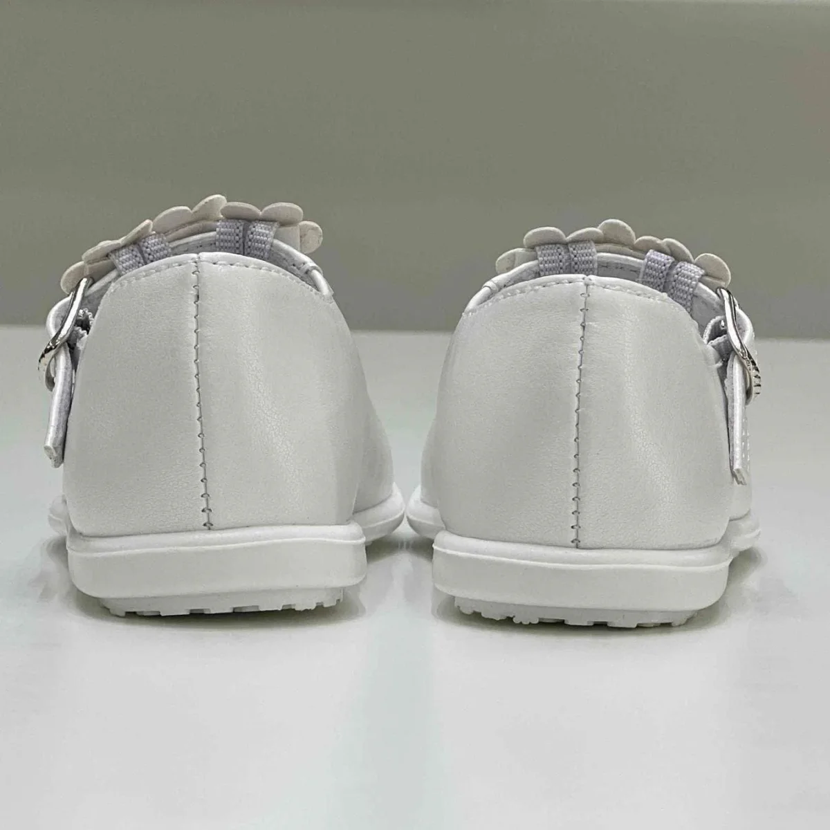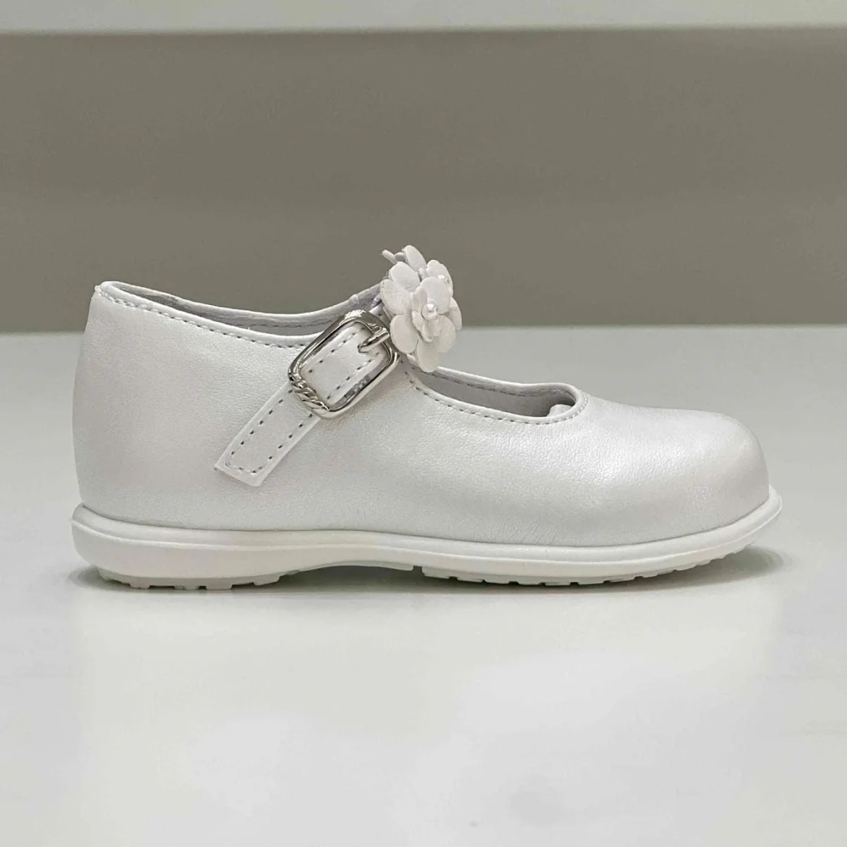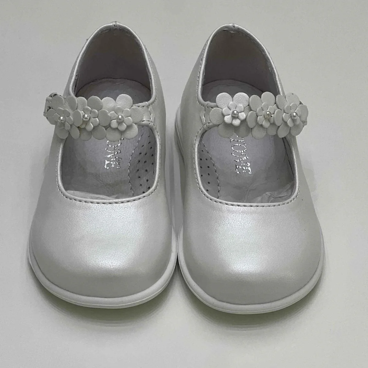 Scarpina bimba primi passi con fiori color bianco perlato.