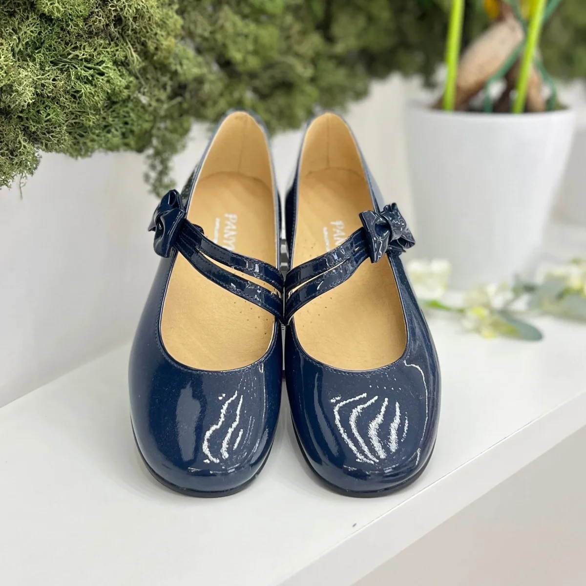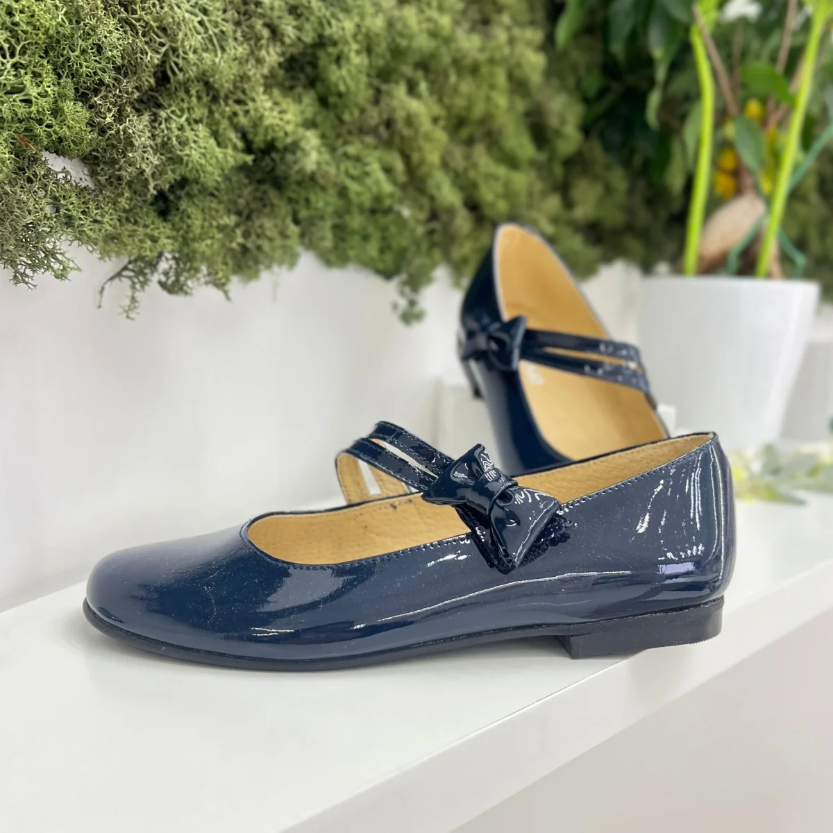 Ballerina in vernice lucida, con cinturino con fibbia. Plantare anatomico e suola antiscivolo.