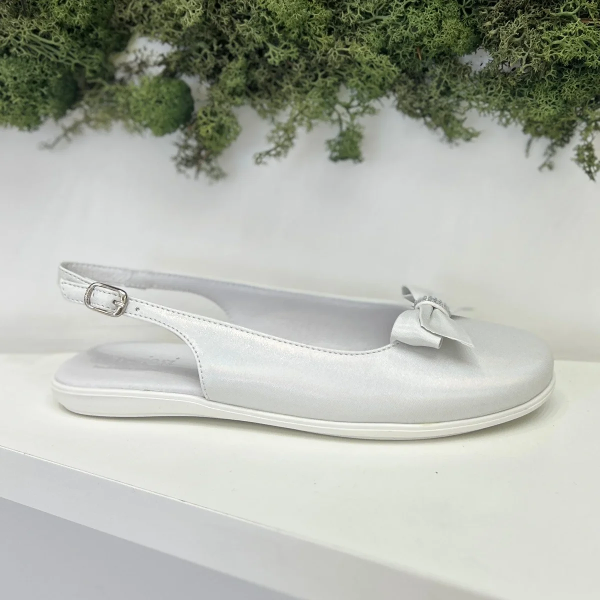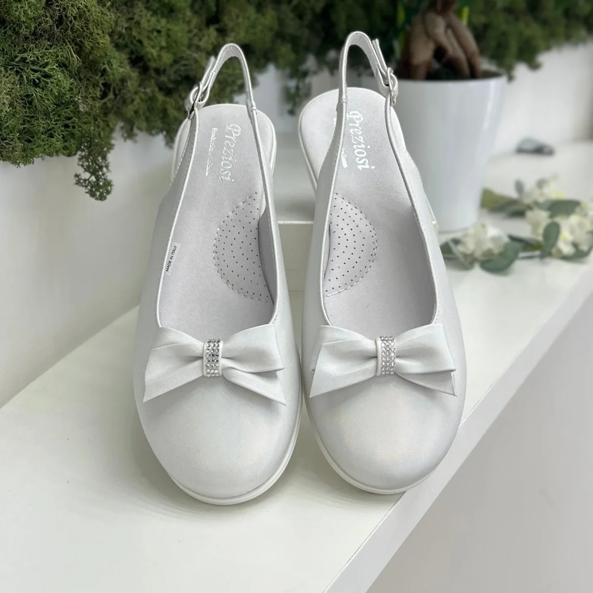 Ballerina aperta dietro con tessuto in strass e fiocco.
