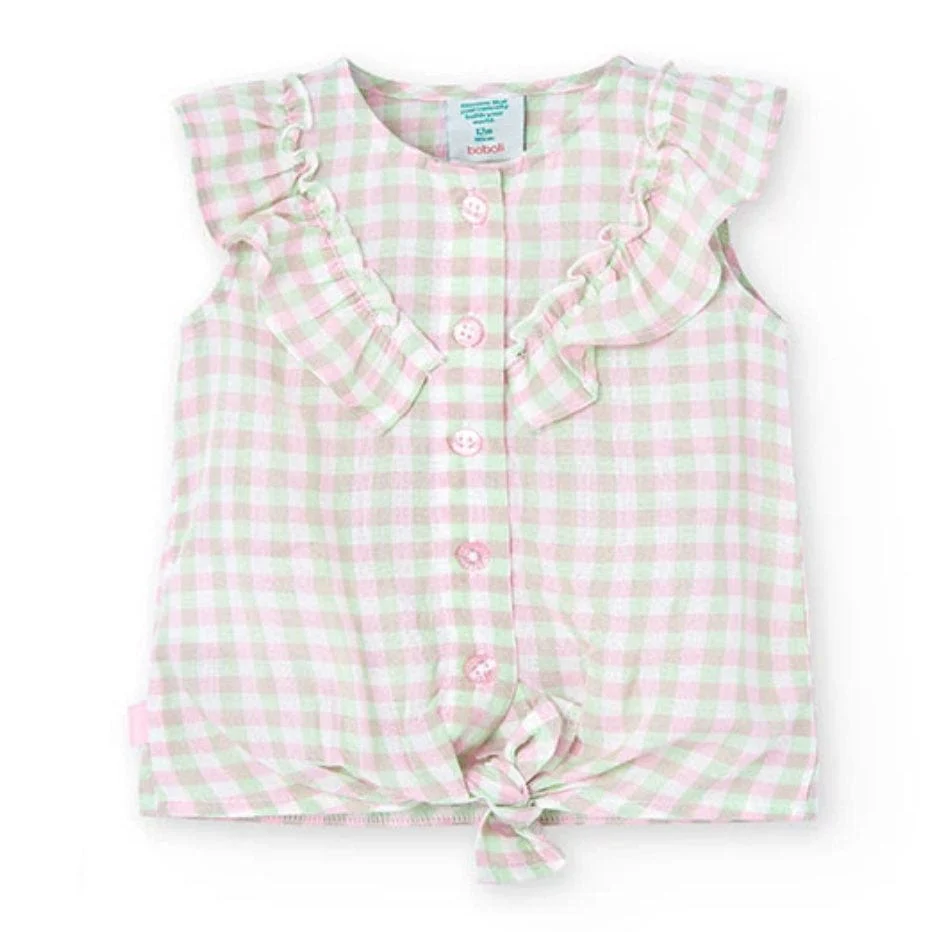 Questa è una blusa in viscosa a quadri per bambina. Il design a quadri in verde la rende vivace e adatta per l’estate. Il tessuto è piatto, leggero e traspirante, perfetto per i giorni caldi. La blusa ha un collo rotondo e maniche corte, ideali per il comfort e la libertà di movimento. Il bottone di chiusura facilita l’indossamento e la rimozione. Questo capo è un’aggiunta versatile al guardaroba di ogni bambina, combinando stile e praticità.