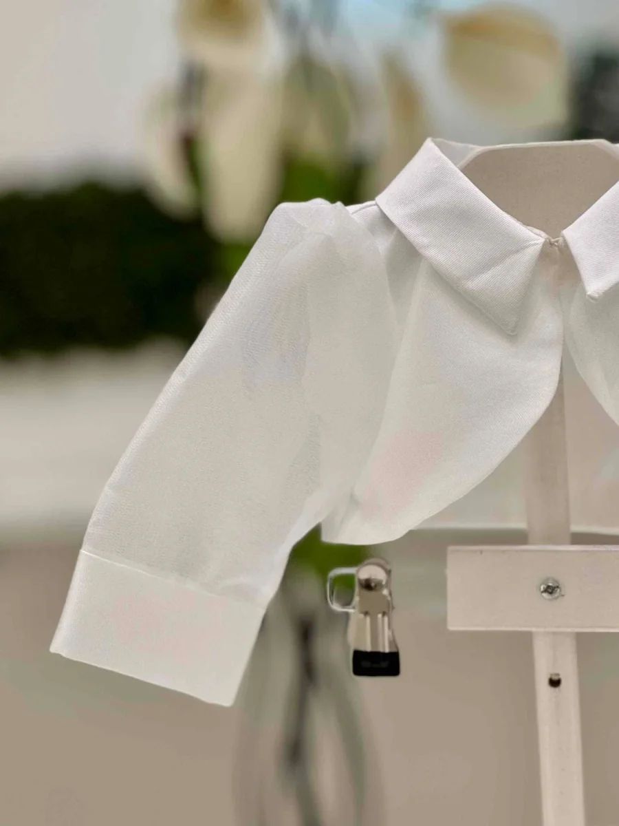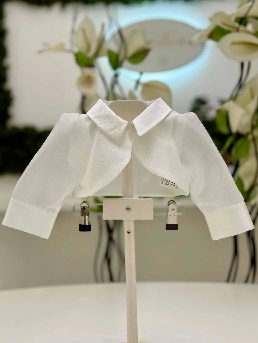 Bolerino in mikado ed organza bianco latte.