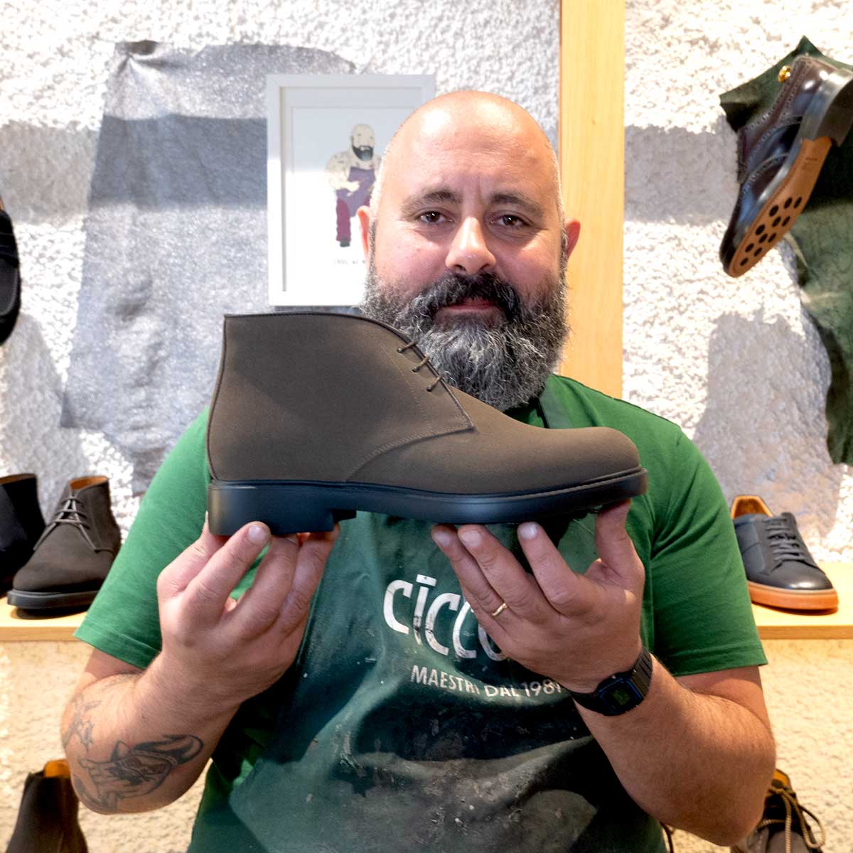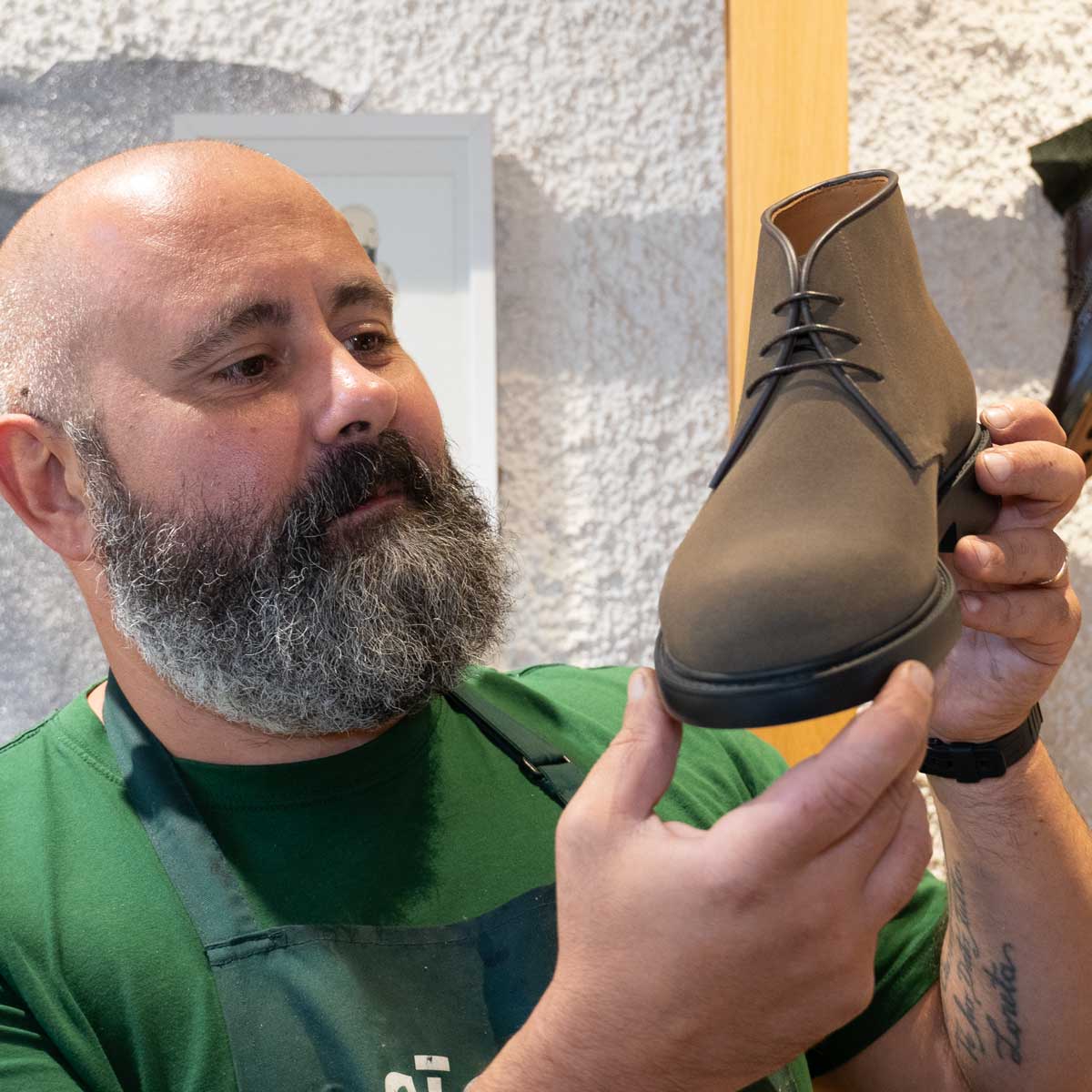 Bologna è una polacchina in pelle scamosciata, un modello con una storia lunga più di un secolo. Da sempre apprezzata per la sua grande comodità e per il suo aspetto semplice ed elegante la polacchina è una calzatura estremamente versatile. Le materie prime, provenienti da antiche concerie toscane, sono lavorate seguendo il processo tradizionale dei maestri artigiani calzaturieri delle Marche.