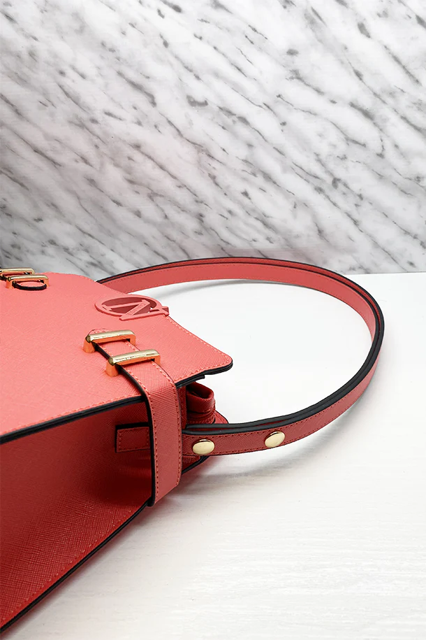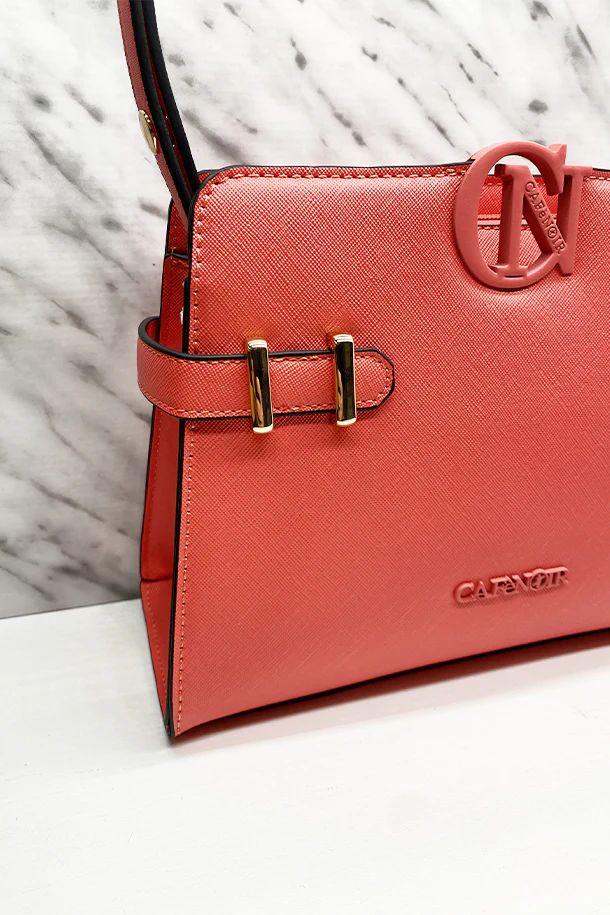 Borsa a tracolla in eco pelle stampata, maxi logo in tinta, chisuura con zip, interno foderato con scomparti