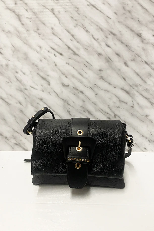 Borsa small in eco pelle solid color con stampa logata in tinta, tracolla fissa e extra tracolla removibile, fascia con fibbia decorativa, chiusura con clip, interno foderato con scomparti