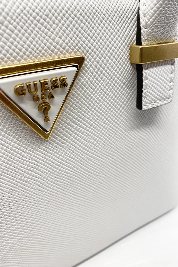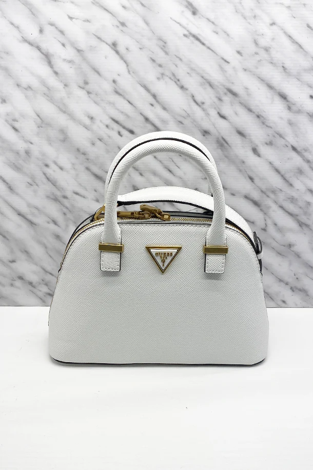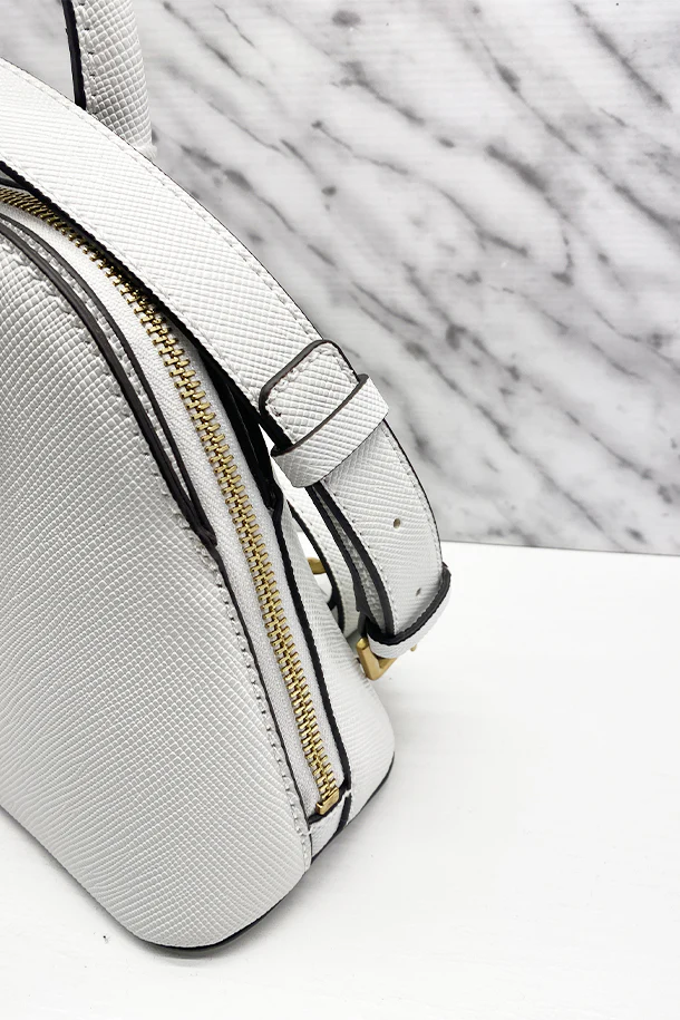 Borsa a mano in eco pelle stampata solid color con manici rigidi in tinta, logo metallico, tracolla removibile, chiusra con zip, interno foderato con scomparti