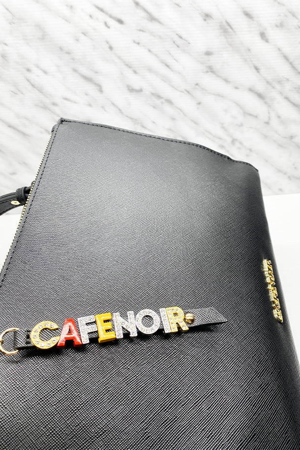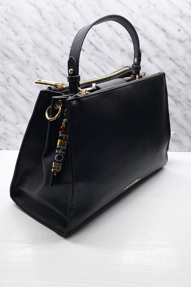 Borsa a mano in eco pelle texturizzata con doppia zip di chiusura, tracolla in tinta removibile, pendente logato, interno foderato con scomparti