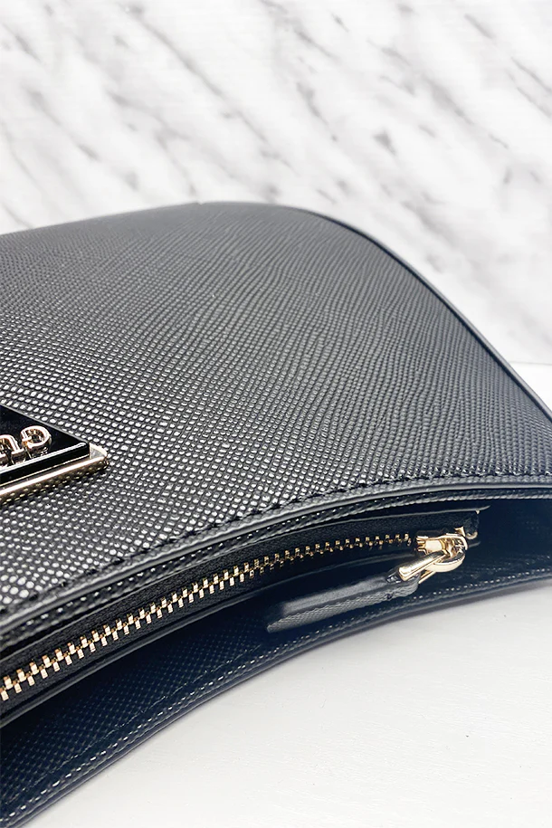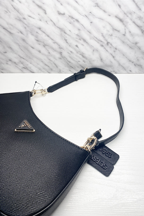 Borsa a spalla in eco pelle texturizzata solid color, tracolla corta regolabile, logo frontale, portachiavi removibili, chiusura con zip, interno foderato