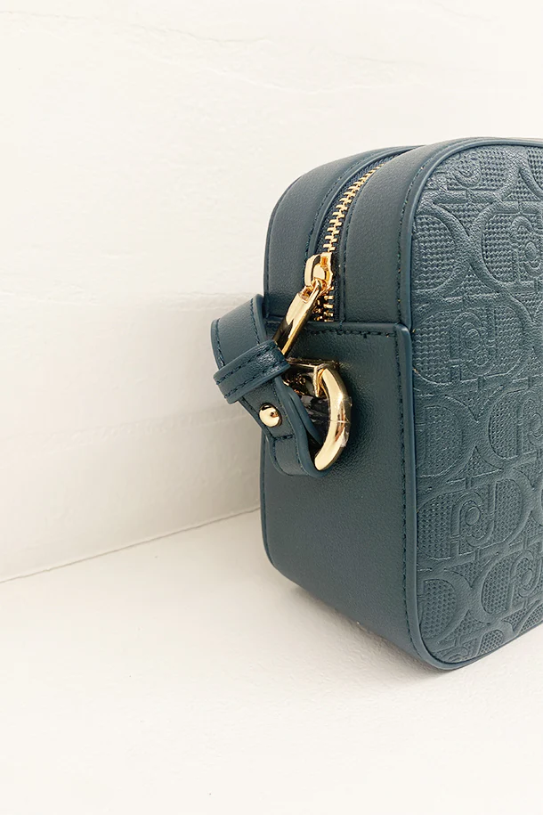 Borsa mini a spalla in eco pelle solid color con trama laserata, tracolla regolabile in tinta, logo metallico, chiusura con zip, interno foderato con scomparti