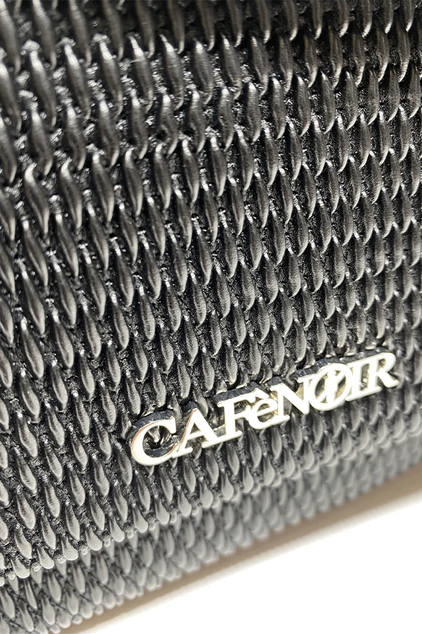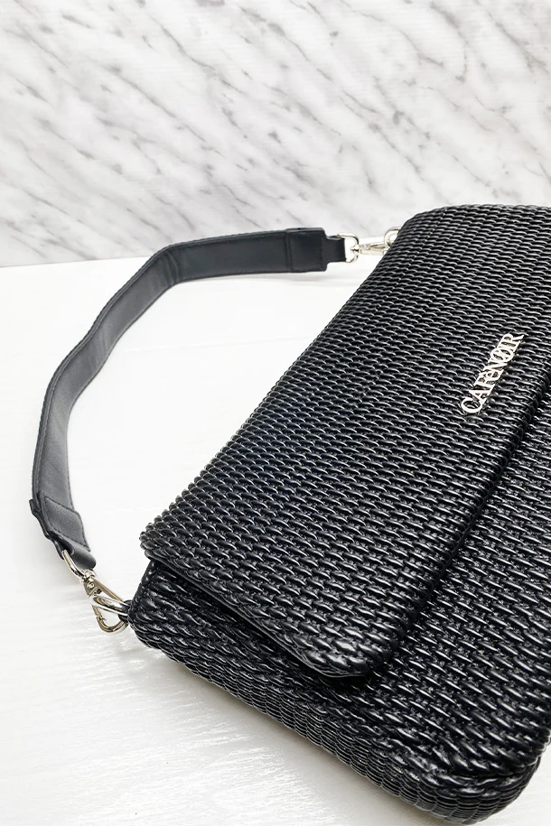 Borsa a spalla in eco pelle con microstampa texturizzata, tracolla logata fissa, chiusura con patta magnetica, interno foderato con scomparti