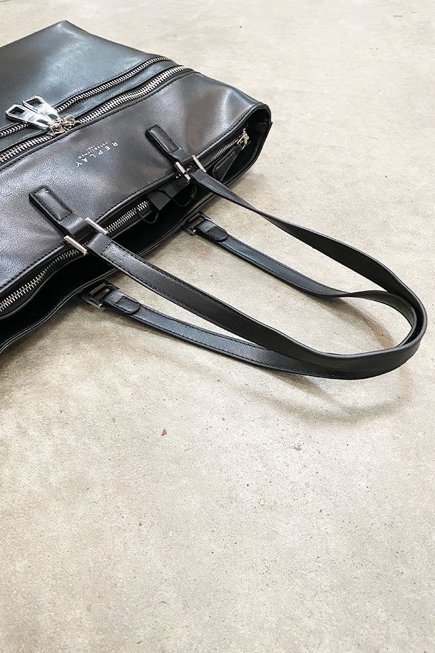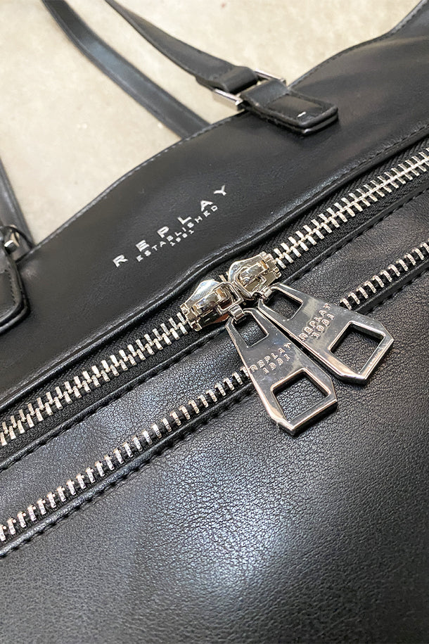 Borsa a mano in eco pelle solid color con doppia zip frontale, manici rigidi, tracolla removibile, chiusura con zip, interno foderato con scomparti