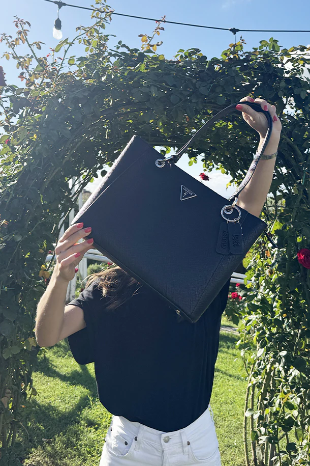 Borsa a spalla a in eco pelle solid color, doppi manici, tracolla removibile in tinta, logo metallico, portachiavi logato, chiusura con zip, interno foderato con scomparti