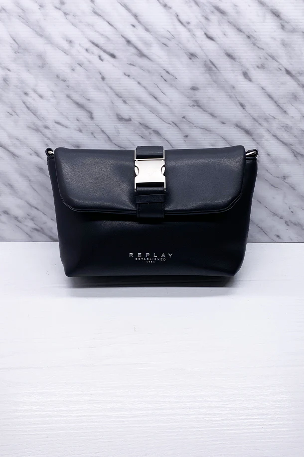 Borsa a mano in eco pelle con chiusura magnetica, fibbia decorativa, tracolla removibile in tinta, interno foderato con scomparti