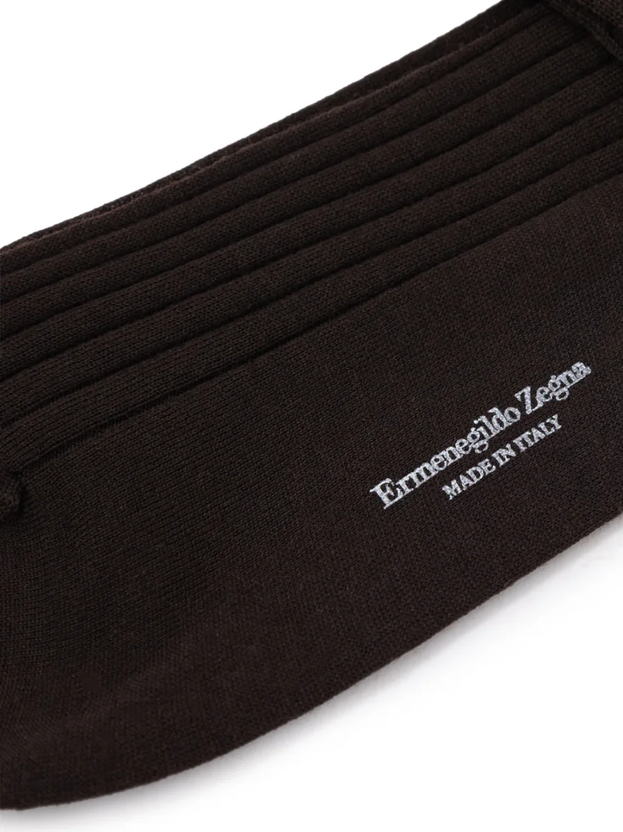 3 Pack Calzini da uomo marroni Ermenegildo Zegna, realizzati in Italia con un pregiato misto: 75% lana merino e 25% poliammide.