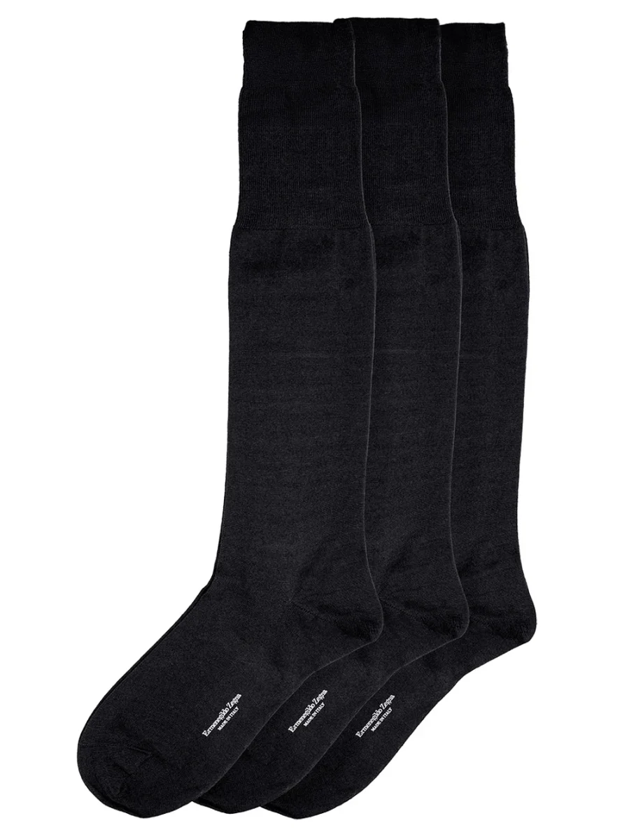 3 Pack Calzini da uomo neri Ermenegildo Zegna, realizzati in Italia con un pregiato misto: 75% lana merino e 25% poliammide.