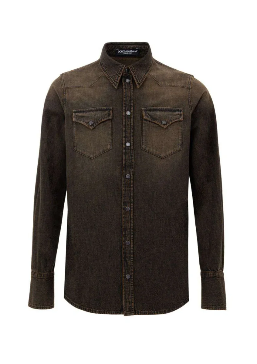 Camicia in Denim Marrone Délavé Dolce & Gabbana