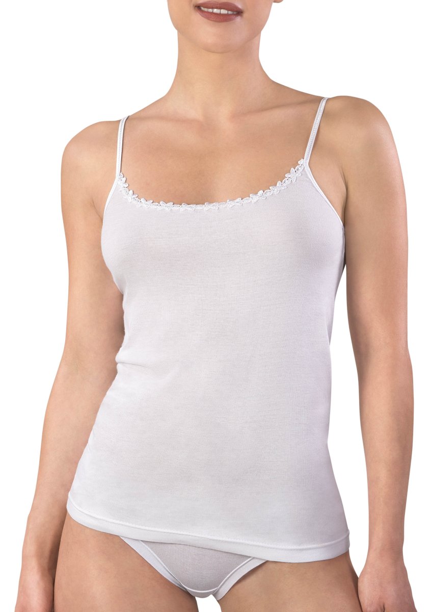 la canotta spalla stretta donna in costina 1/1 arricchita da una catena in macrame’: una creazione di ineguagliabile eleganza e comfort. Tessuta con maestria per offrire una leggerezza e una freschezza unica, questa canotta rappresenta un’espressione raffinata e di qualità per chi cerca un capo distintivo e di alta gamma. Perfetta per la donna che desidera raffinatezza nel suo guardaroba.