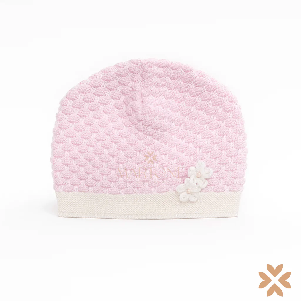 Cappellino 100% lana, realizzato con lavorazione fine e rifinito da delicati fiorellini all’uncinetto applicati a mano. Morbido, caldo e curato in ogni dettaglio.