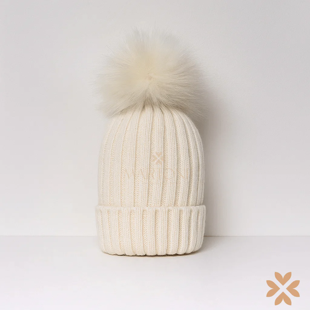 Cappello in misto lana, elasticizzato con pompon in ecopelliccia.