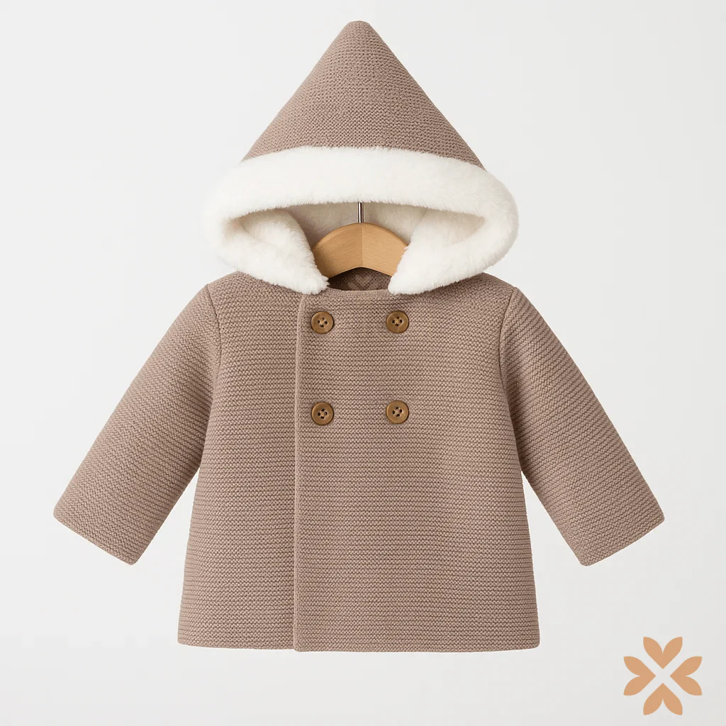 Cappotto doppiopetto in misto lana, con cappuccio foderato in ecopelliccia. Elegante e caldo, un capo perfetto per completare con stile i look della stagione fredda.