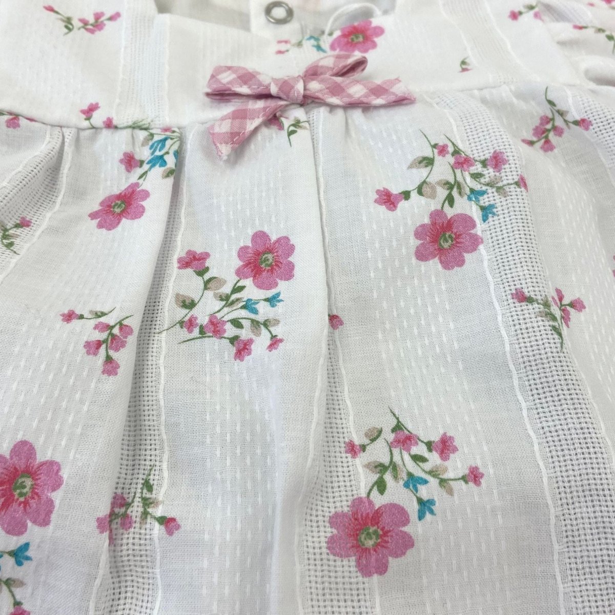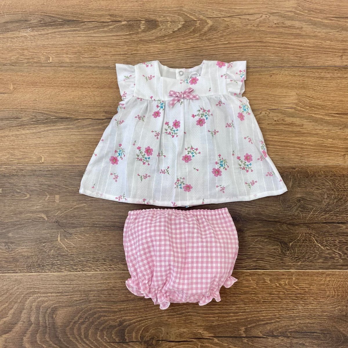 Completo due pezzi con fantasia floreale e culotte a quadretti.