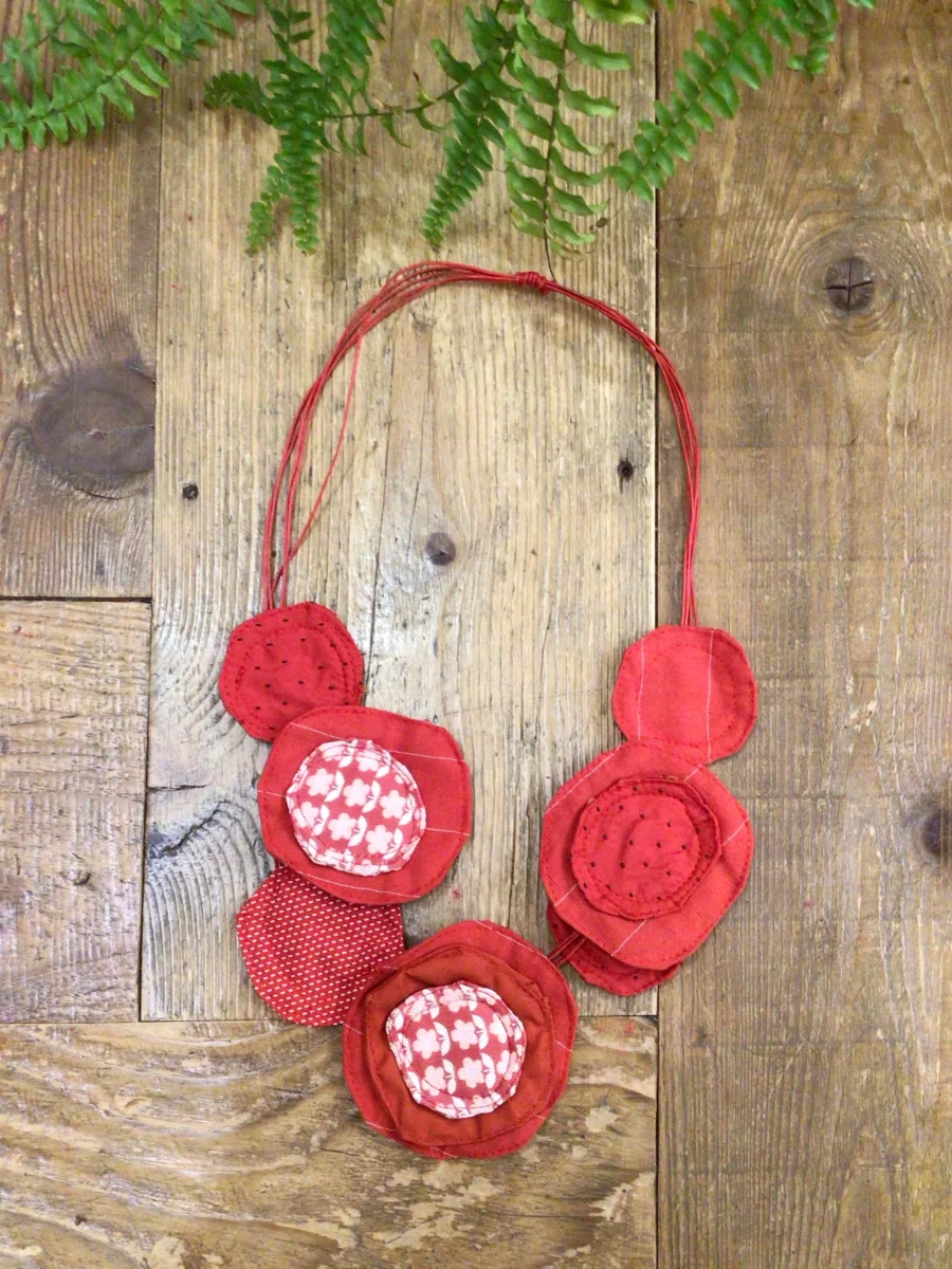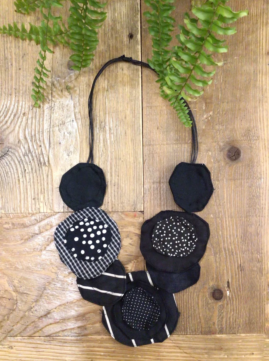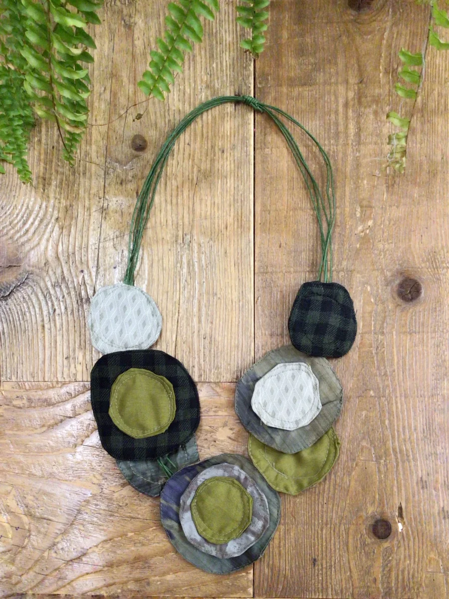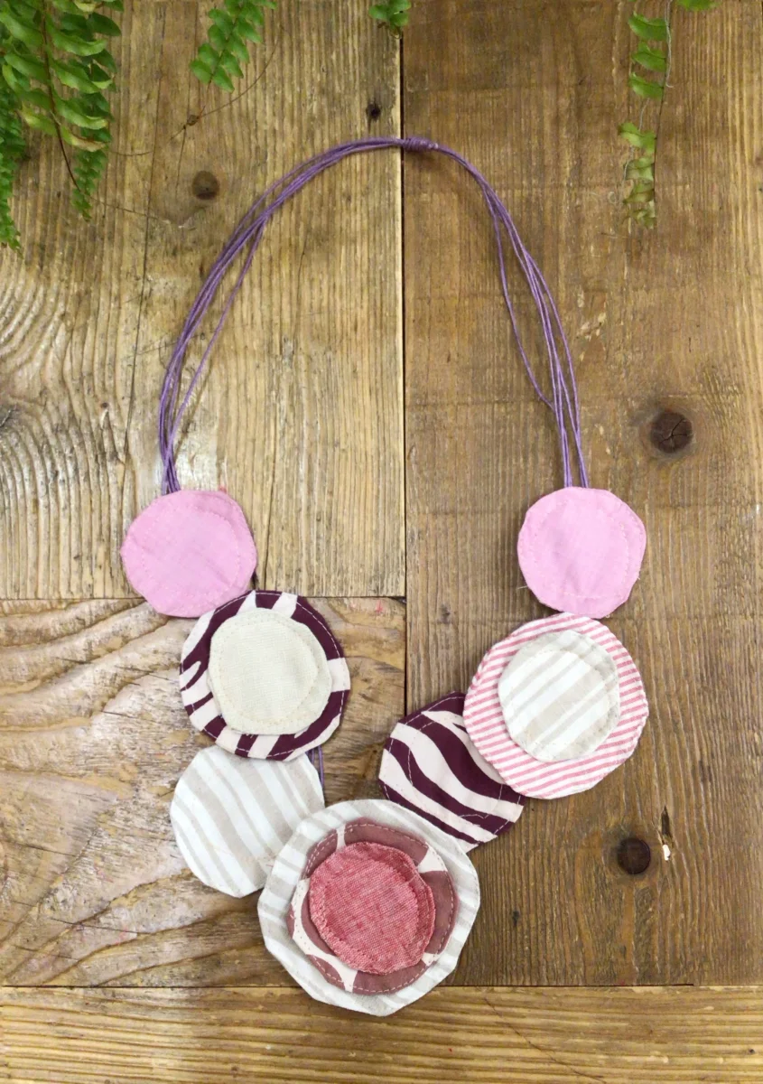 Collana con cerchi di tessuto di diverse dimensioni.