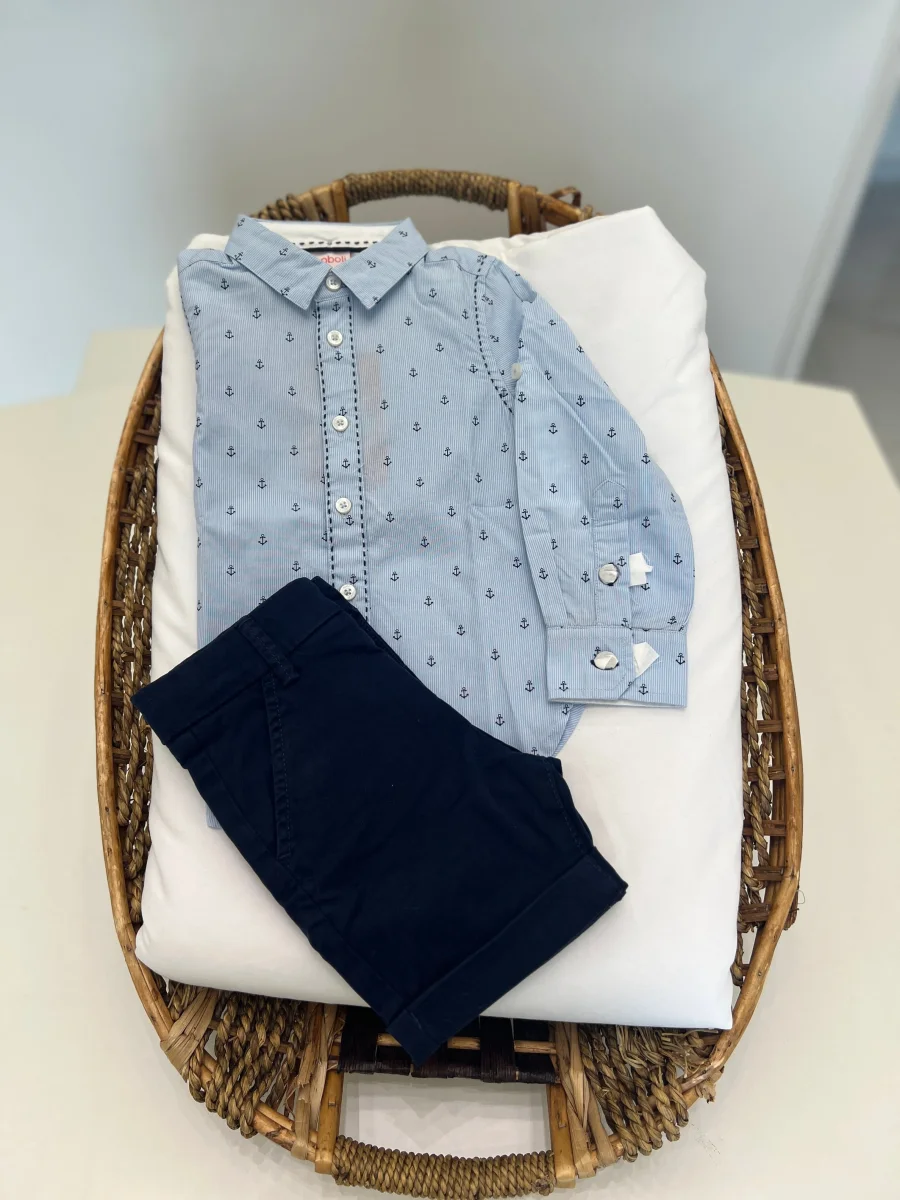 Questa è una camicia popeline stampata per bambini. Il tessuto è piatto e l’abbigliamento è ideale per la stagione primavera-estate. La camicia ha un colletto alla coreana e maniche lunghe. La decorazione è un motivo stampato. Il colore predominante è l’azzurro chiaro. La chiusura è a bottone, rendendo facile da indossare e togliere. Questa camicia è perfetta per i piccoli che vogliono essere alla moda e comodi allo stesso tempo.