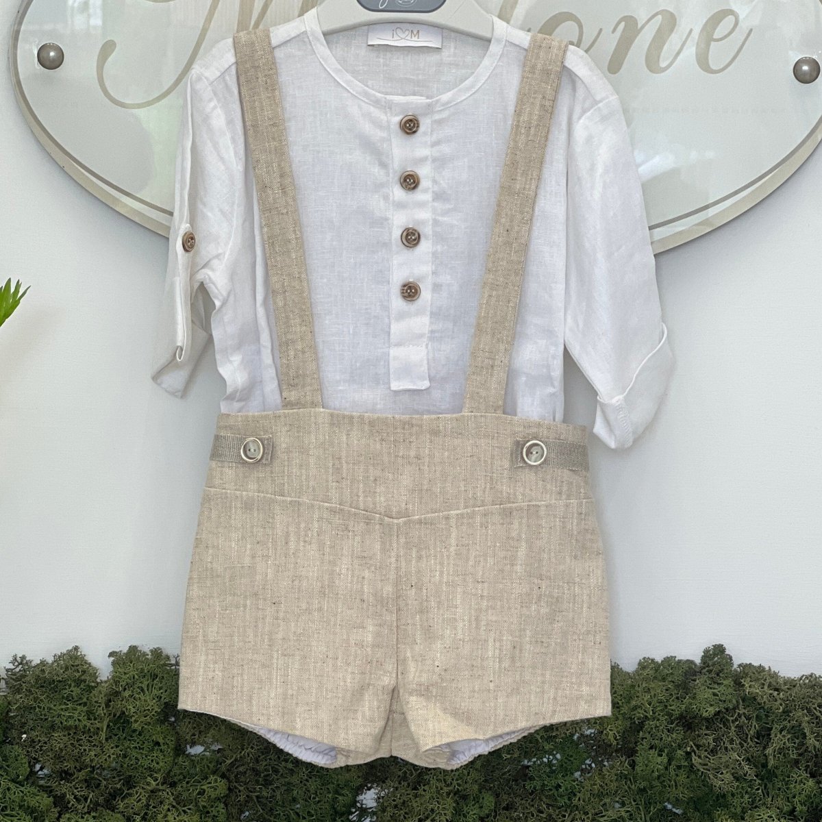 Completo in lino con bretelle, con blusa coordinata