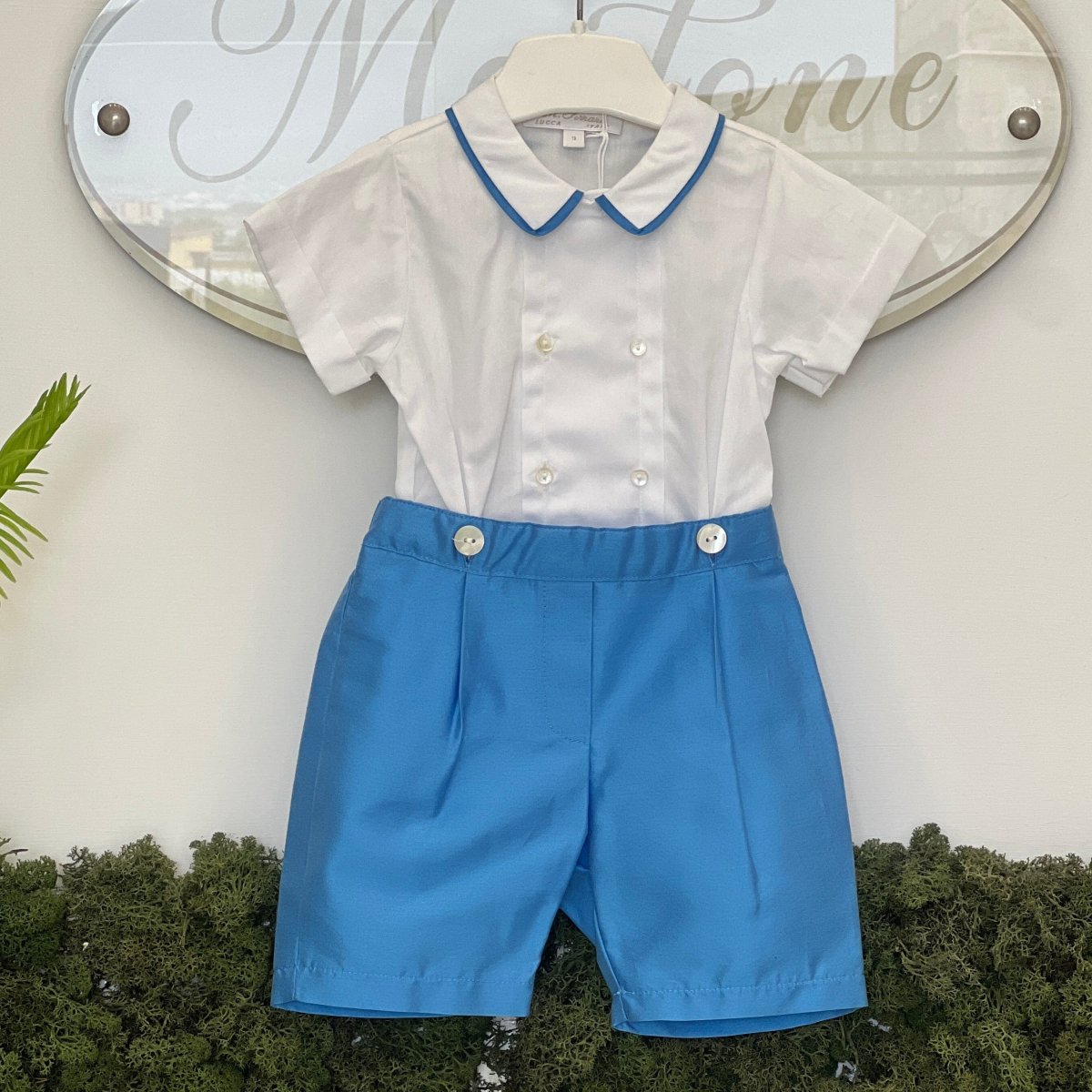 Completo in shantung e cotone composto da pantaloncini con camicia coordinata.