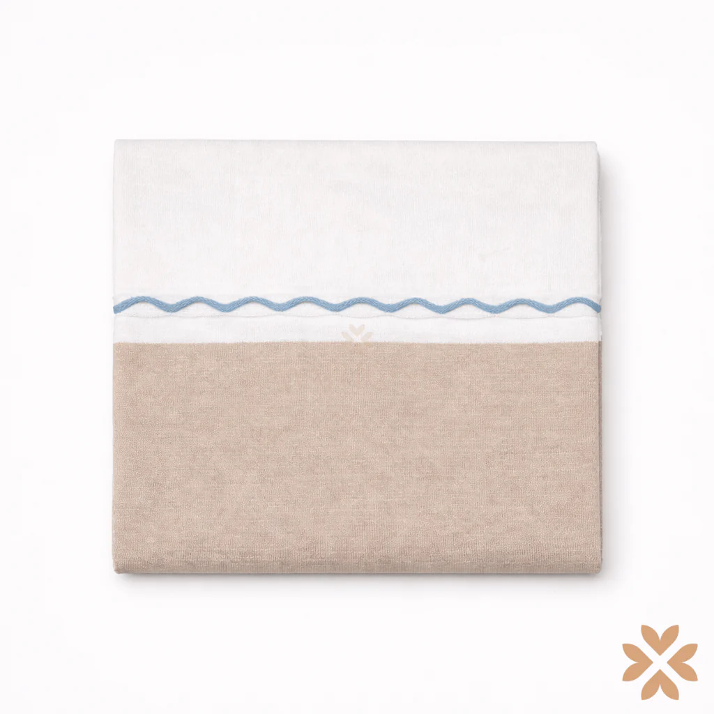 Coperta neonato in filo di cotone con lavorazione liscia e motivo ondulato a contrasto. Rifinitura perimetrale pulita. Dimensioni ideali per carrozzina e culla.