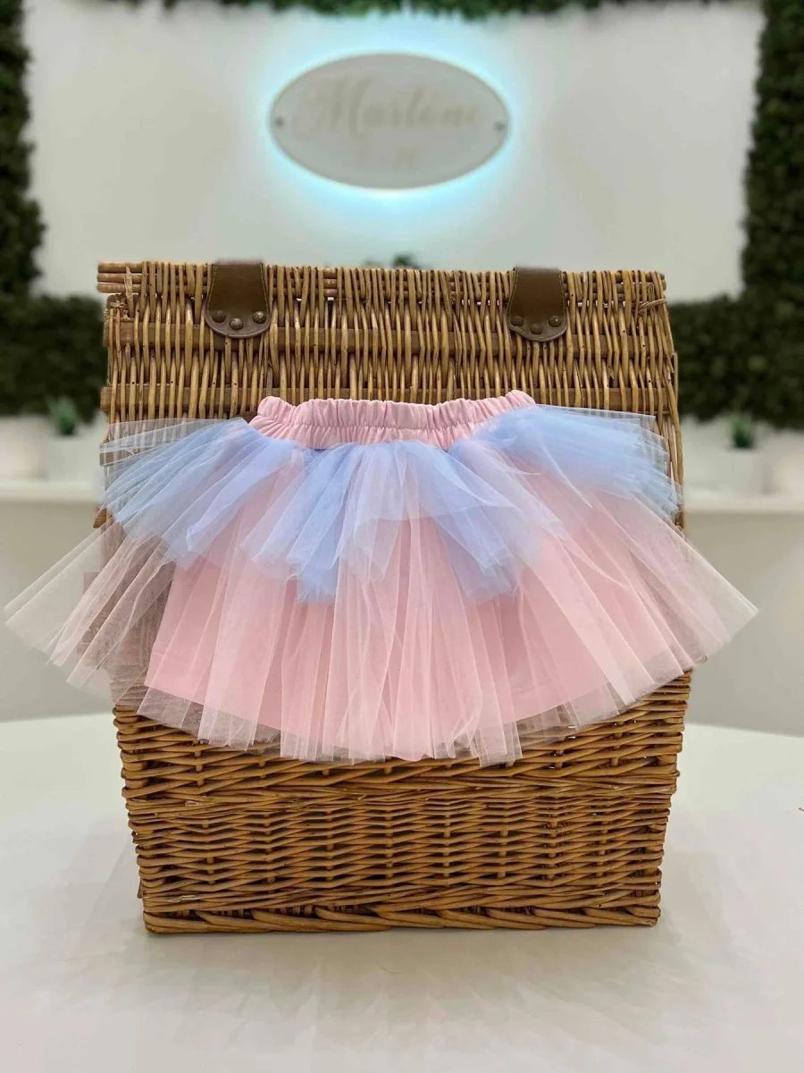 Pantagonna in cotone elasticizzato e tulle a balze.