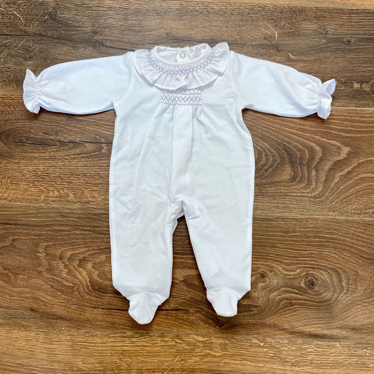 Tutina intera con collo con rouches e punto smock.