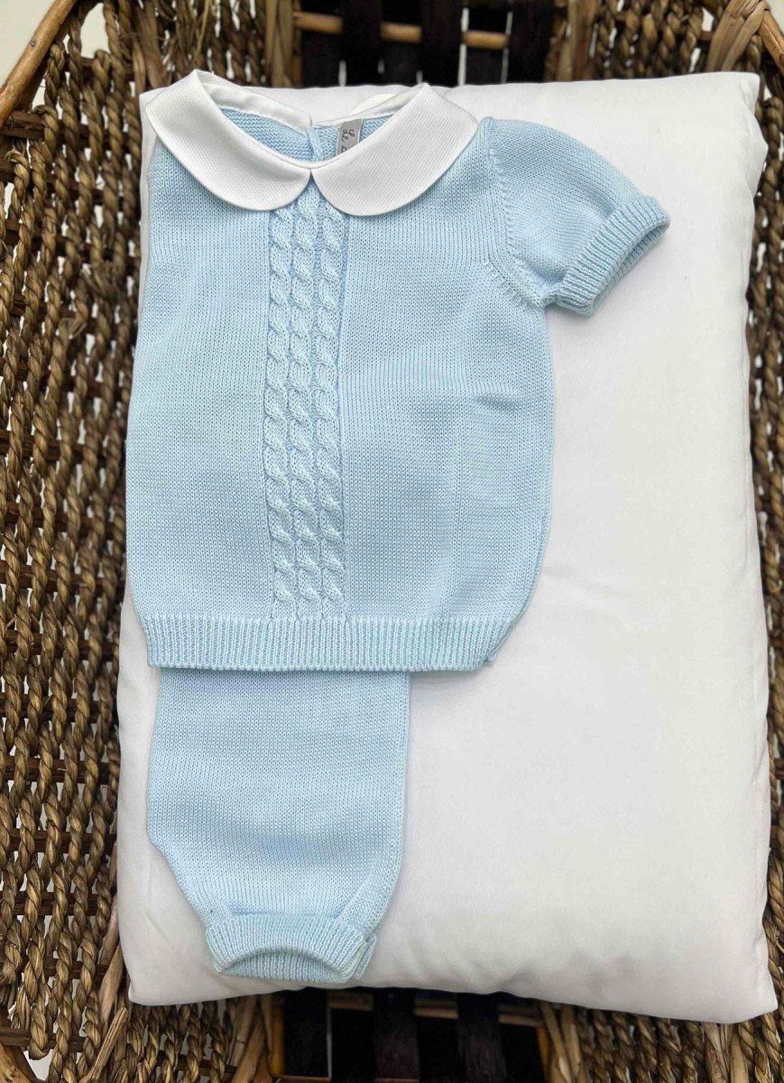 Completo clinico neonato due pezzi maglietta manica corta e short, con trama ricamata ad intreccio.